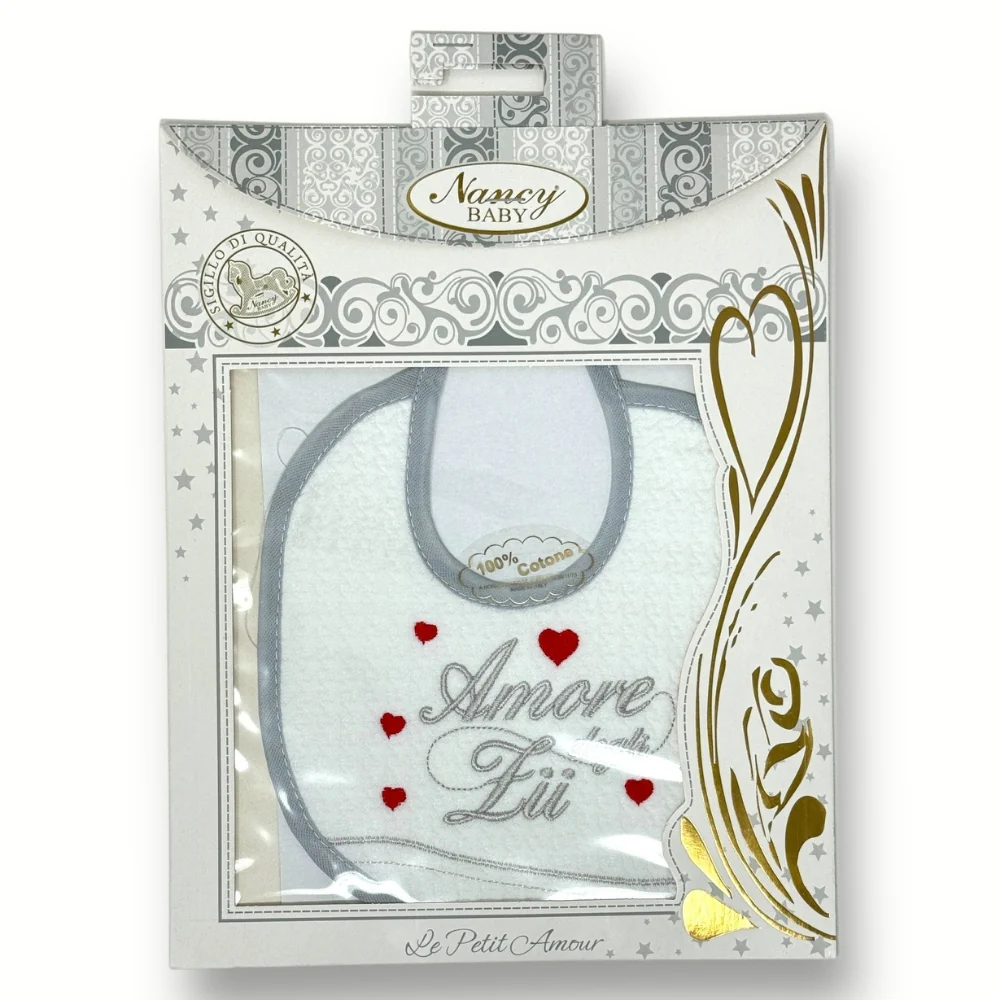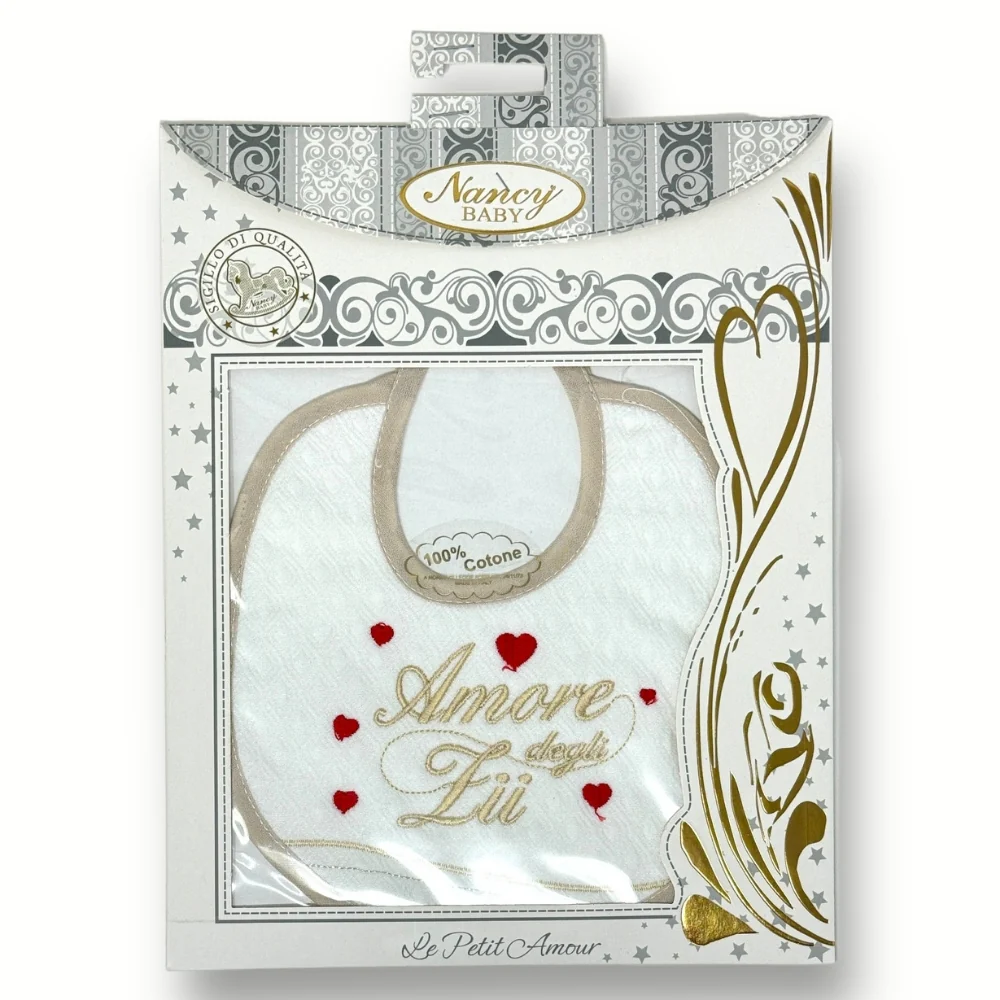 388-4 Bav – -nancy Baby- Bavetta In Puro Cotone Con Ricamo (amore Degli Zii)