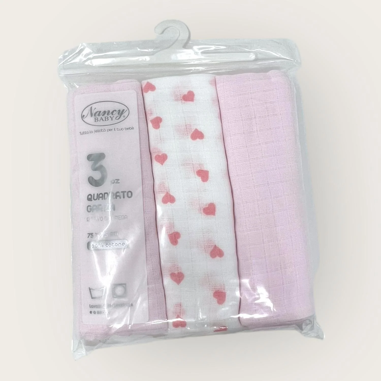 507 Quadrato – Nancy Baby Confezione 3 Pezzi Quadrato Garza 100% Cotone Mis. 75×75 Colorato Stampato