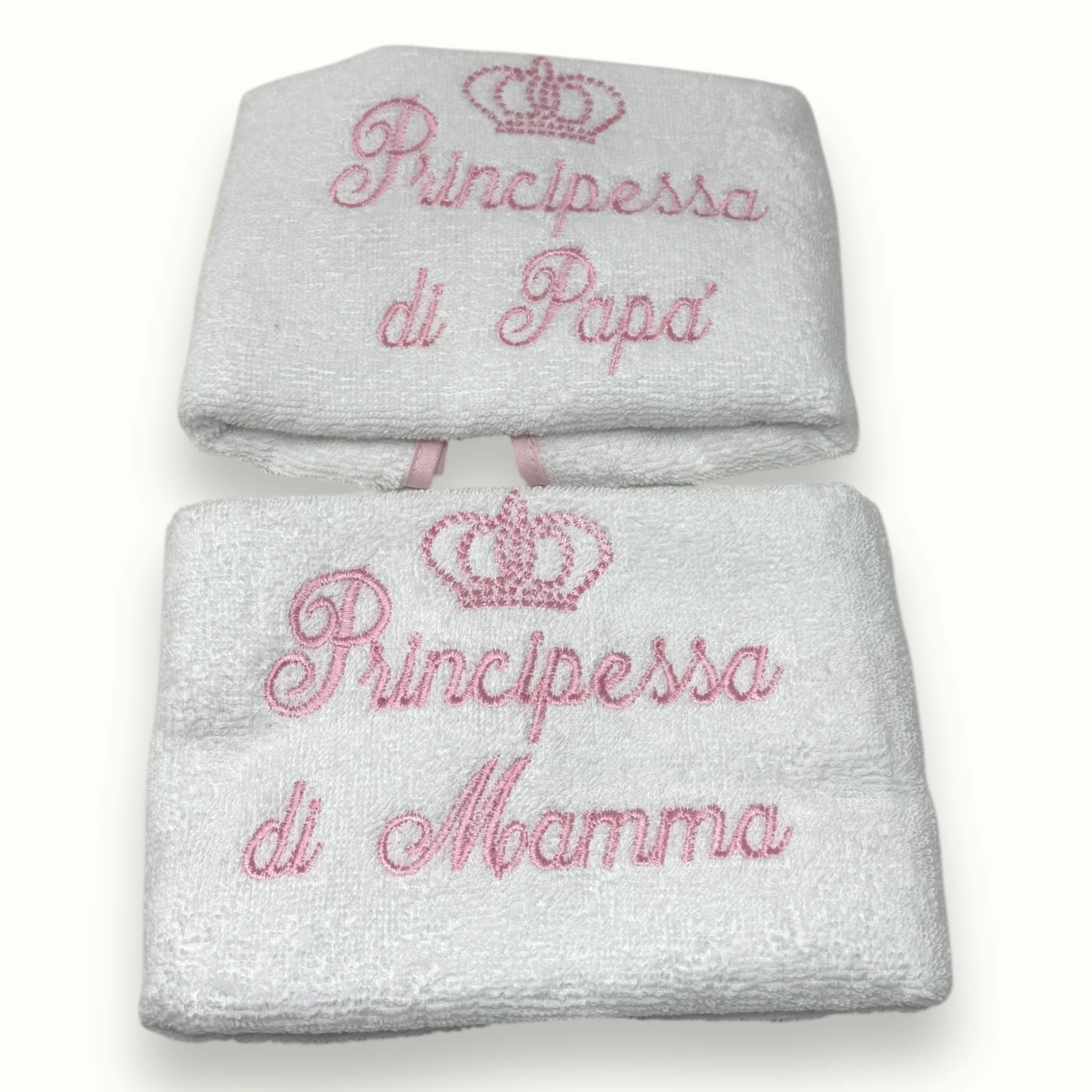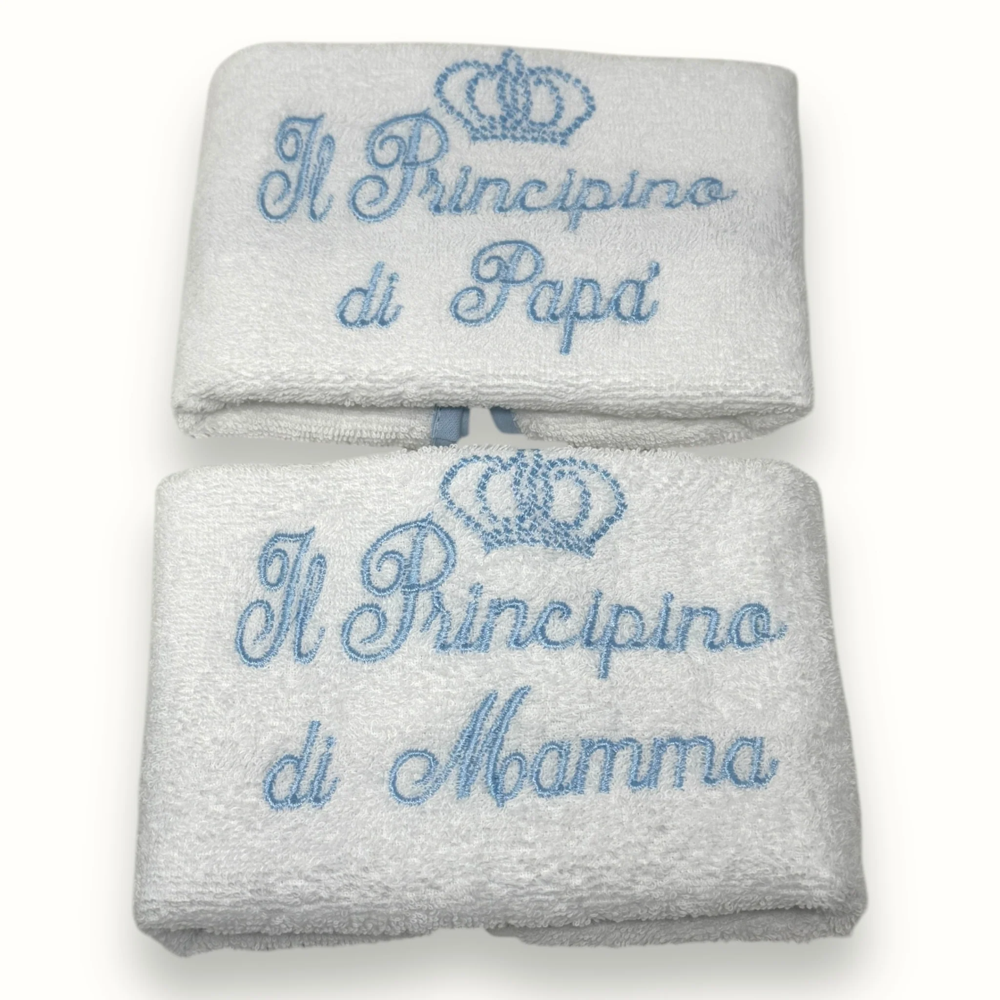 1517 Set – -linea Nancy Baby- Idea Regalo Baby Set 2 Asciugamano Ricamati Mamma/papà