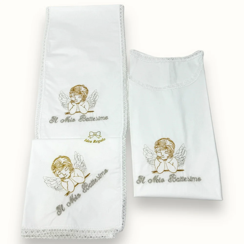 80 Set Batt – -nancy Baby- Set 3 Pezzi Battesimale (camicina+stola+fazzoletto) In Puro Cotone Ricamato