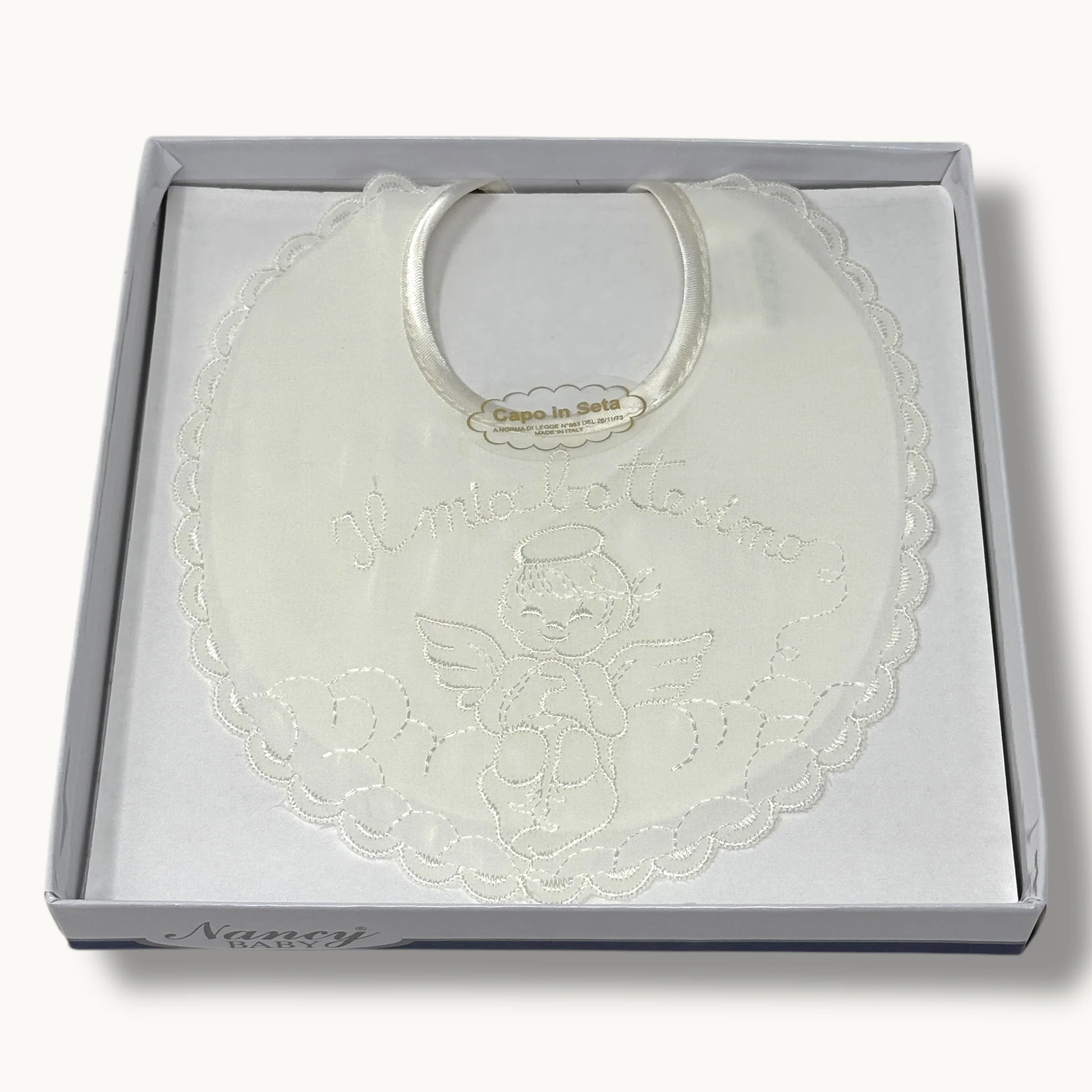 161 Bav – -nancy Baby- 1 Pezzo Bavetta Il Mio Battesimo In Seta Ricamata
