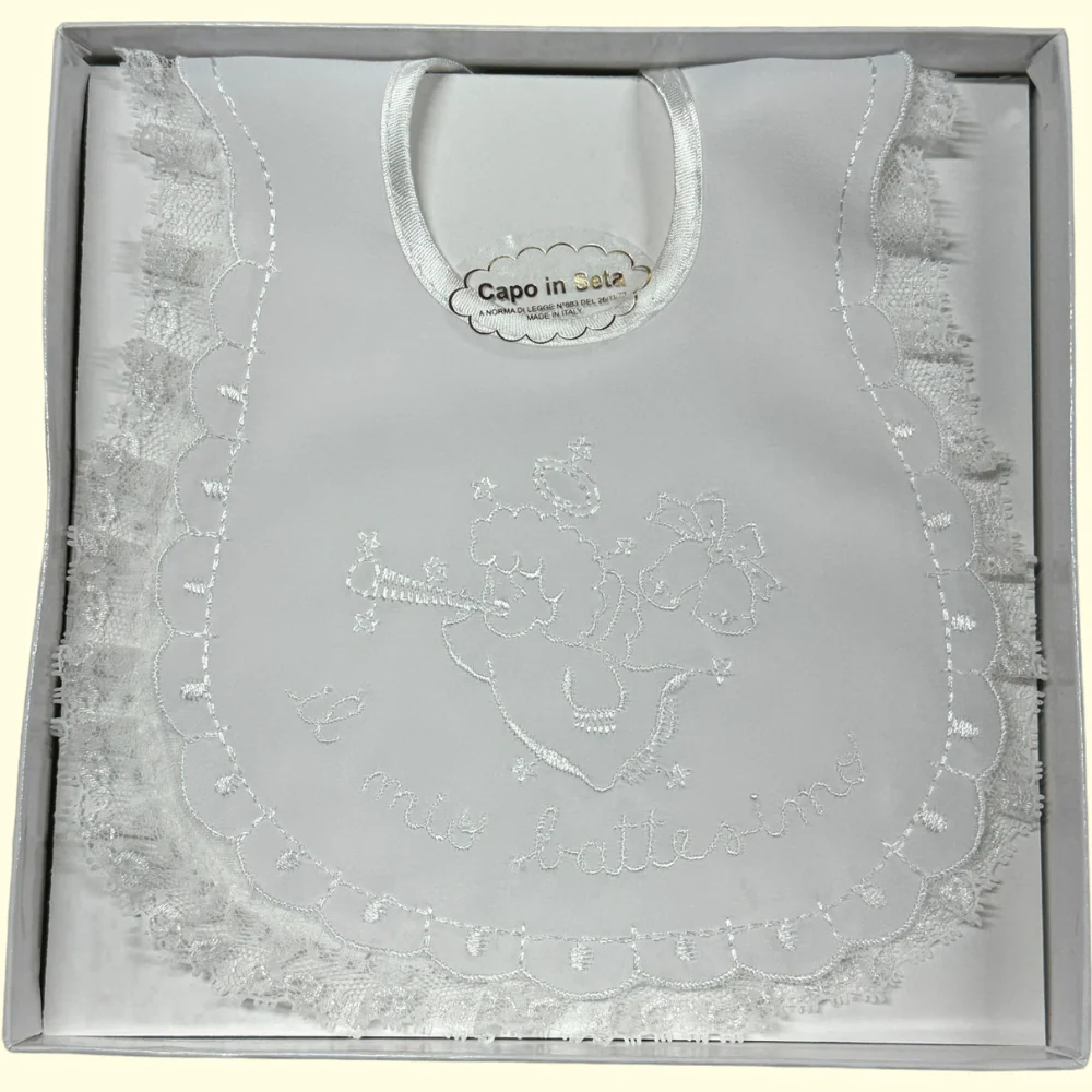 166 Bav – -nancy Baby- 1 Pezzo Bavetta Il Mio Battesimo In Seta Ricamata Con Pizzo