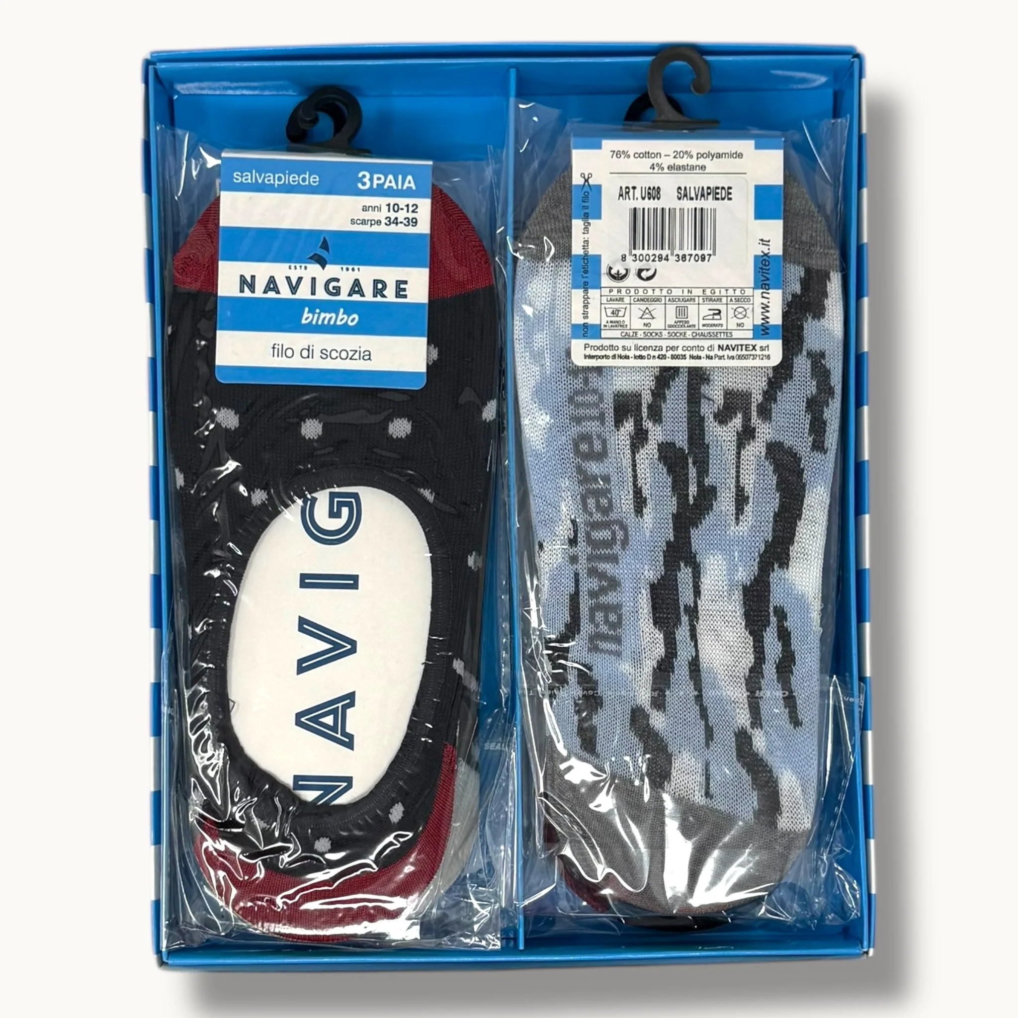 u608 – Navigare Confezione Da 3 Paia Assortiti Di Colore Salvapiede Bambino Fantasia In Filo Di Scozia Art. U608