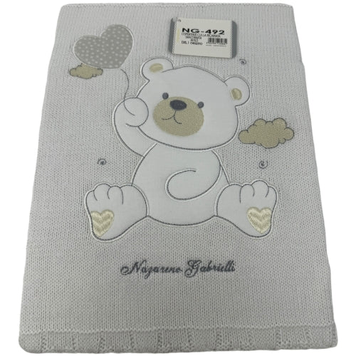 Ng492-1 – -nazareno Gabrielli Baby- Copertina Culla Ricamo Orsetto In Filo Di Puro Cotone