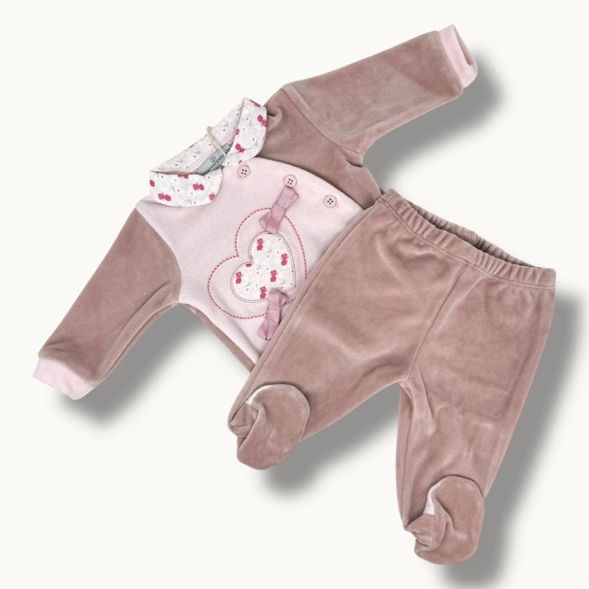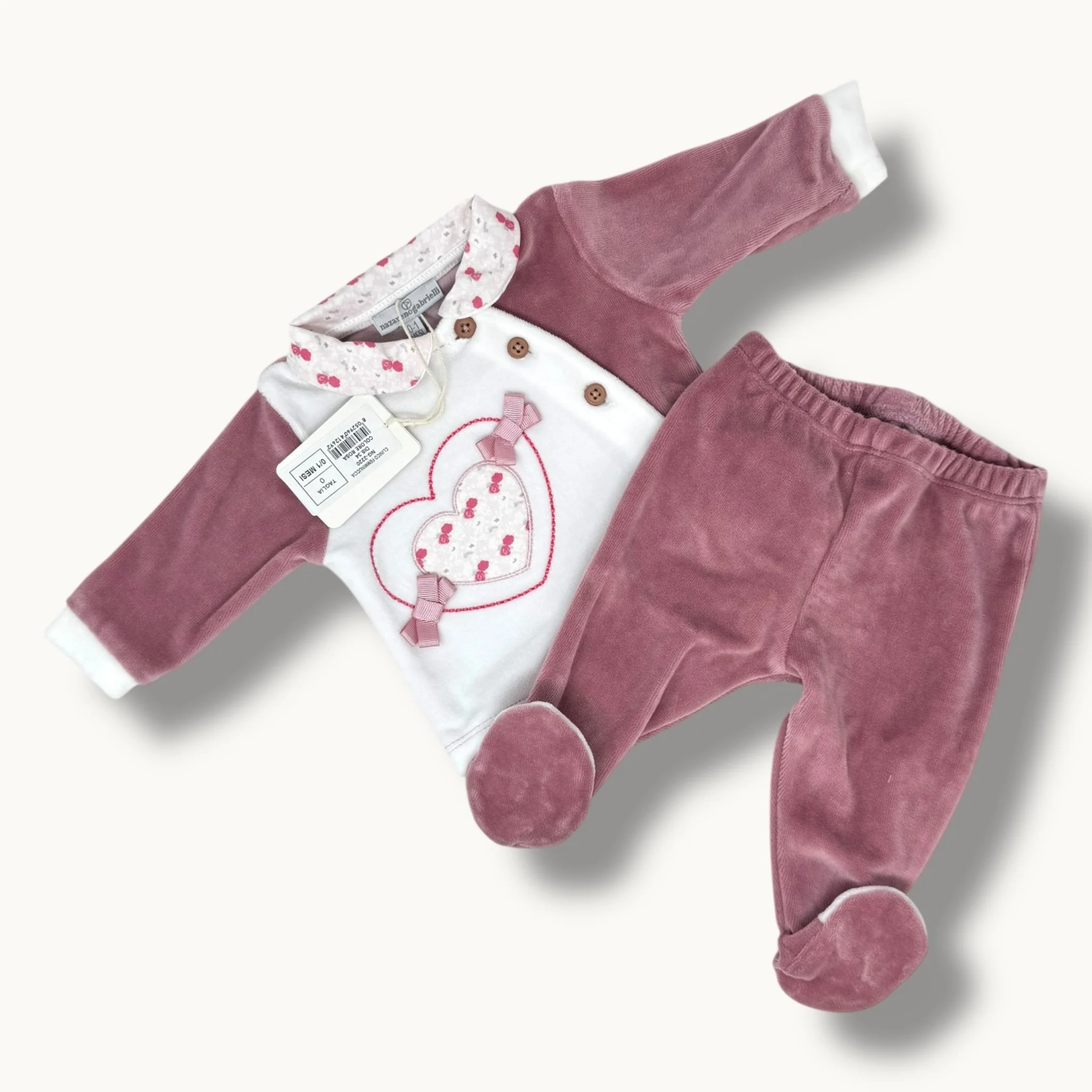 Ng2220-34 – Nazareno Gabrielli Completo 2 Pezzi Clinico Neonata In Ciniglia Di Cotone Ricamata