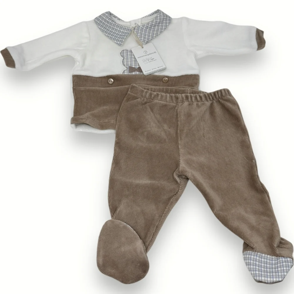 Ng2120-30 – -nazareno Gabrielli- Completo 2 Pezzi Clinico Neonato In Ciniglia Di Cotone Con Applicazione