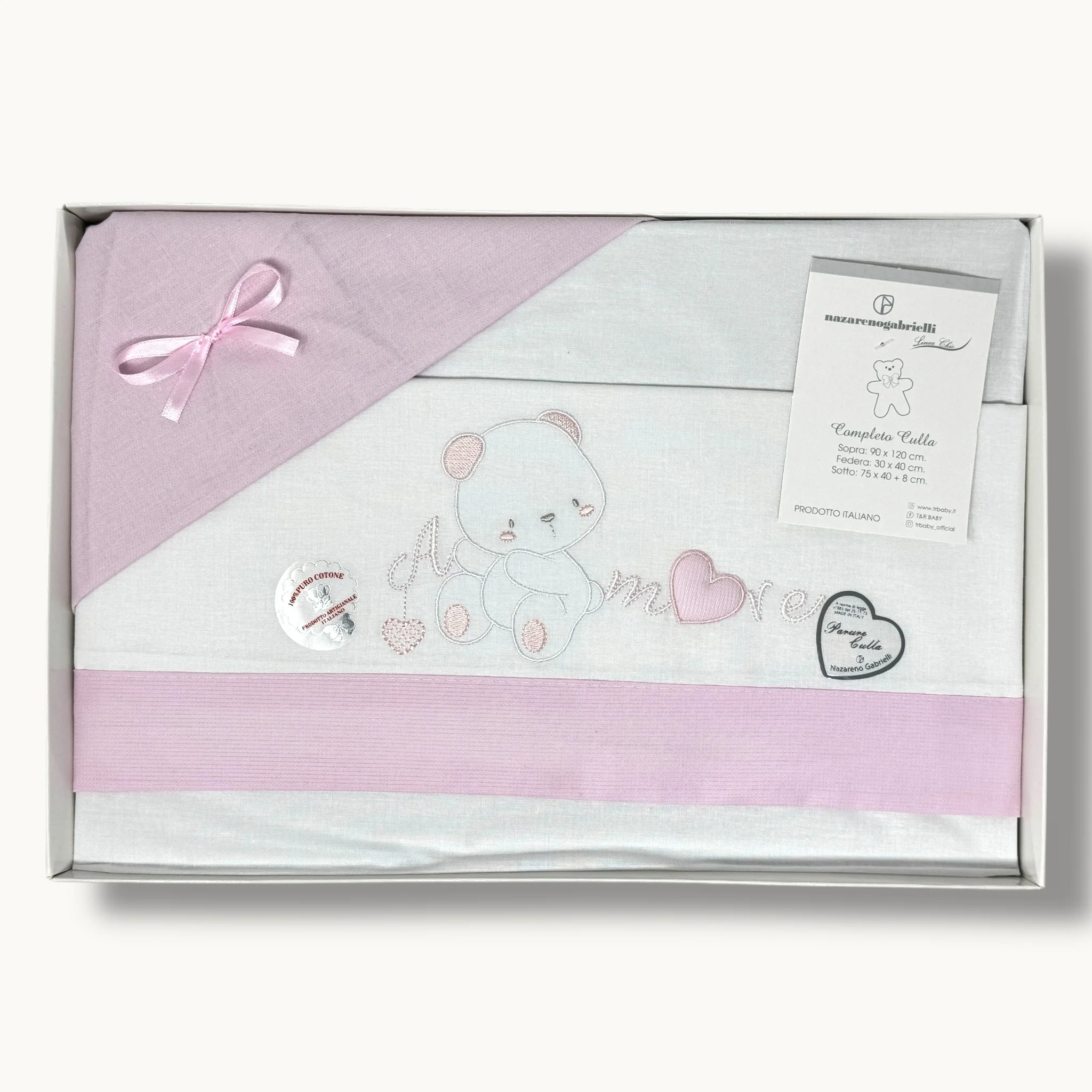 -nazareno Gabrielli- Completo Lenzuola 3 Pezzi Carrozzina Ricamata 90×120 Art. Ng91-46