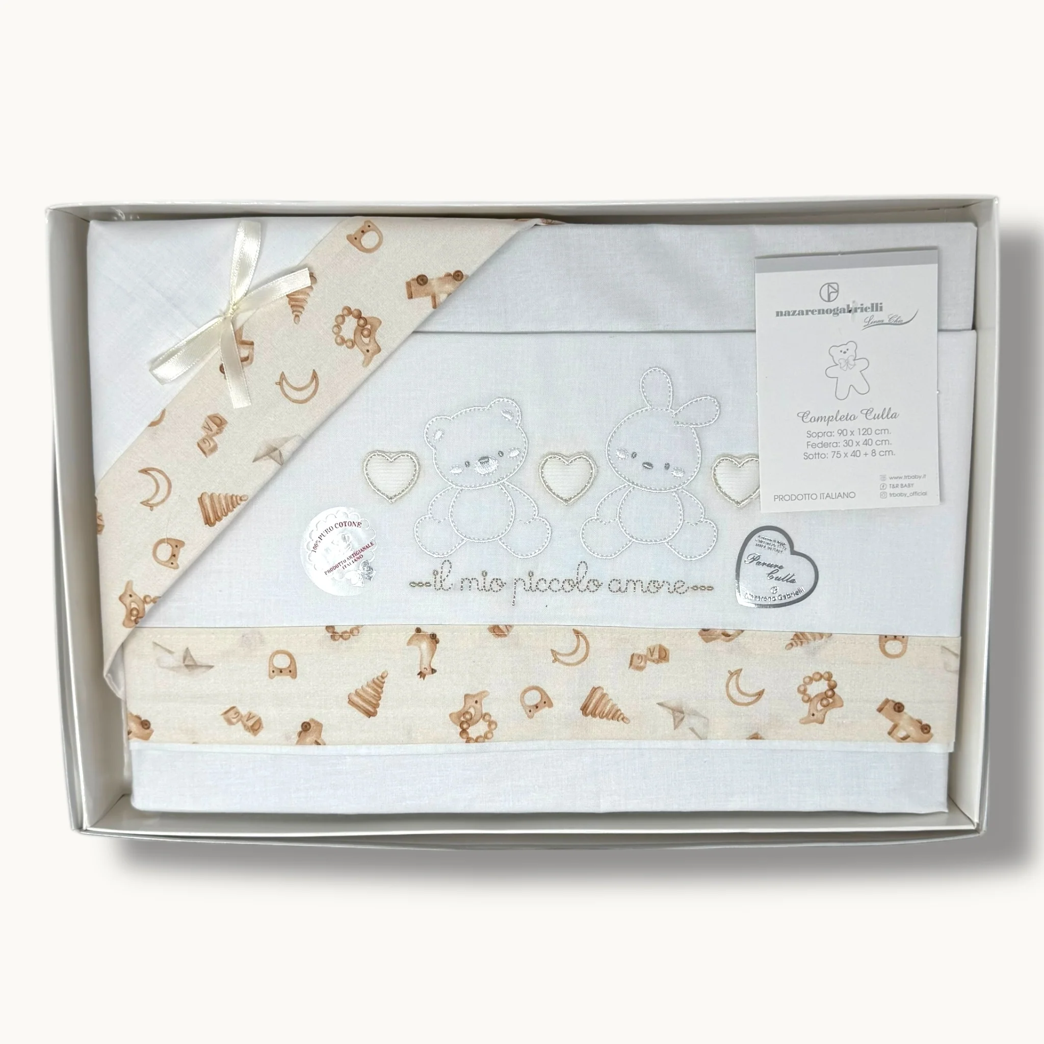 -nazareno Gabrielli- Completo Lenzuola 3 Pezzi Carrozzina Ricamata 90×120 Art. Ng91-10