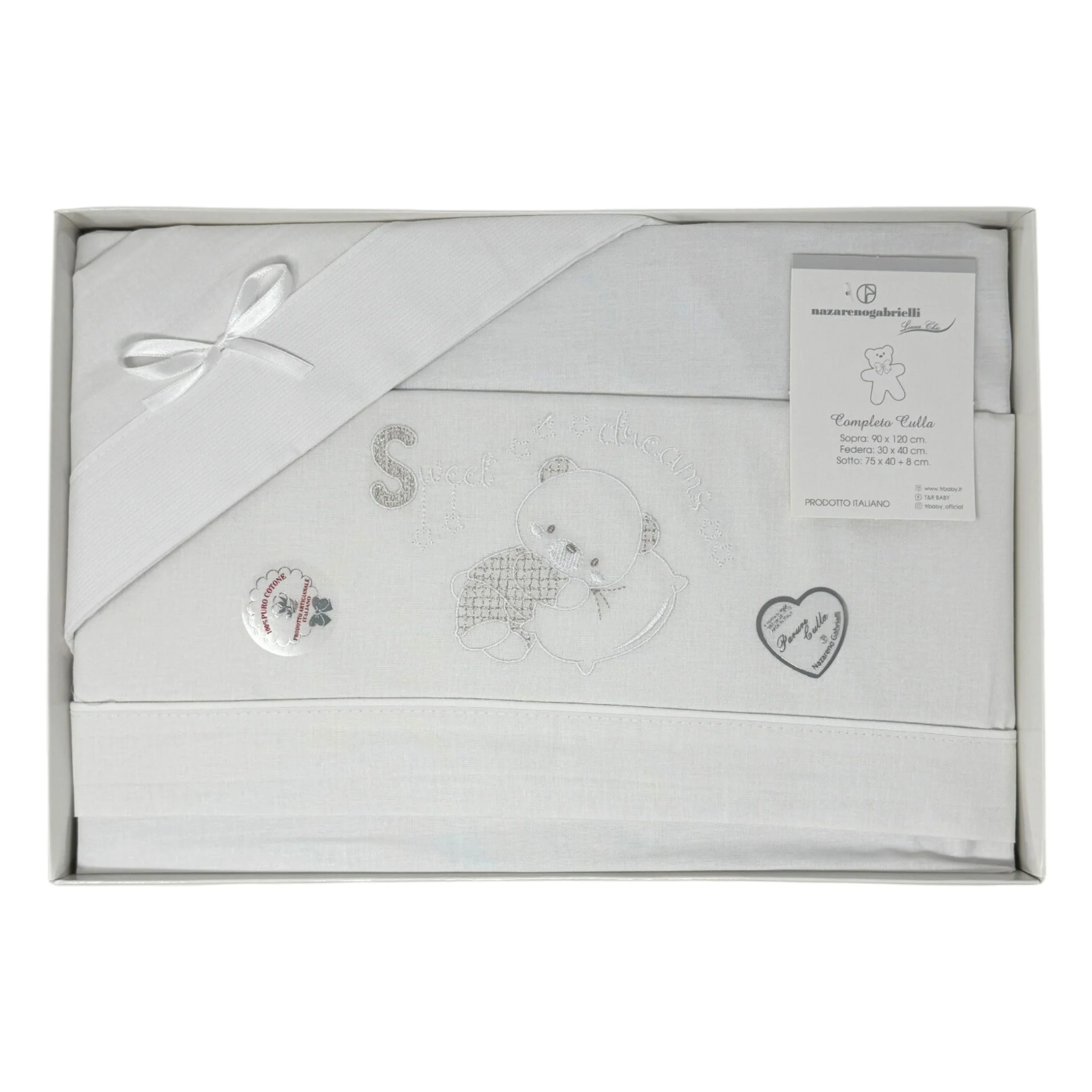 -nazareno Gabrielli- Completo Lenzuola 3 Pezzi Carrozzina Ricamata 90×120 Art. Ng91-10