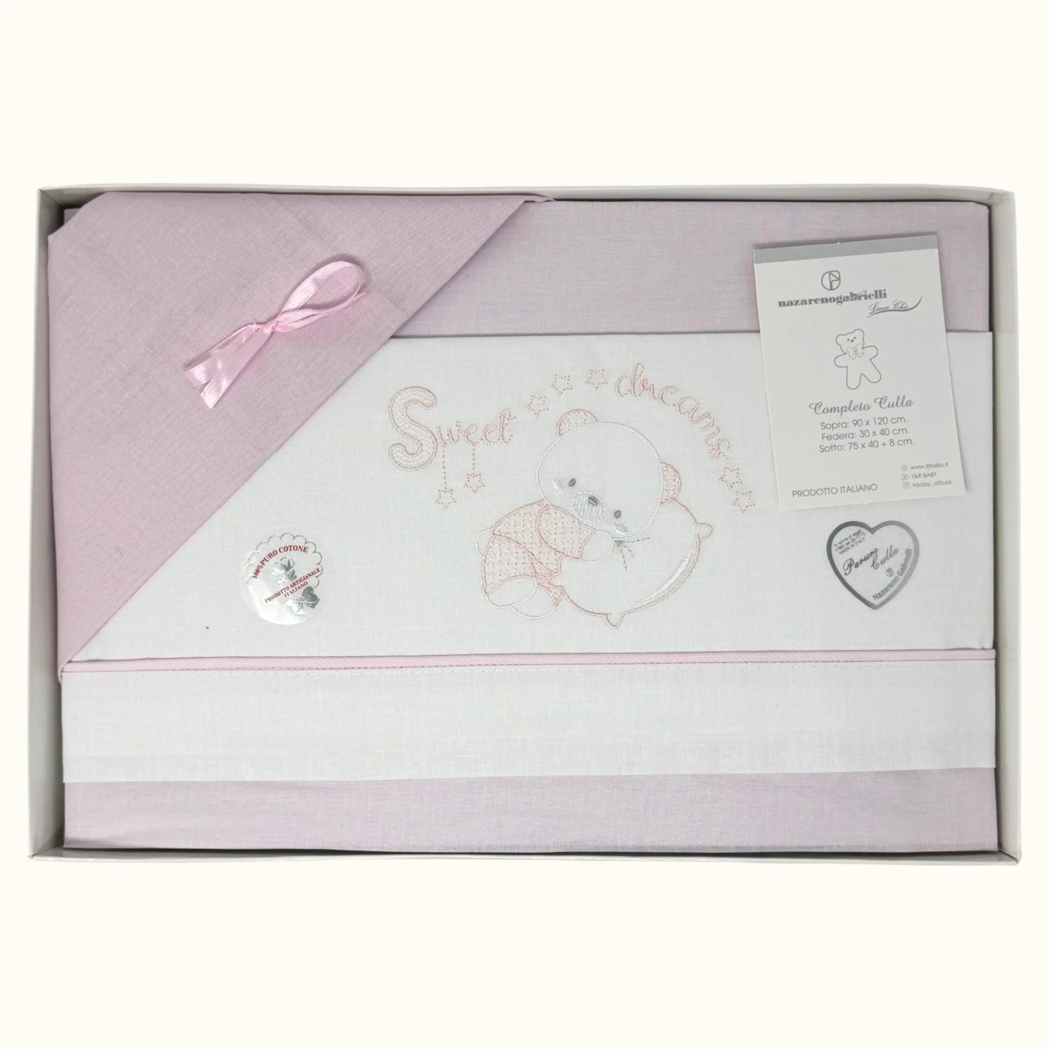 -nazareno Gabrielli- Completo Lenzuola 3 Pezzi Carrozzina Ricamata 90×120 Art. Ng91-45