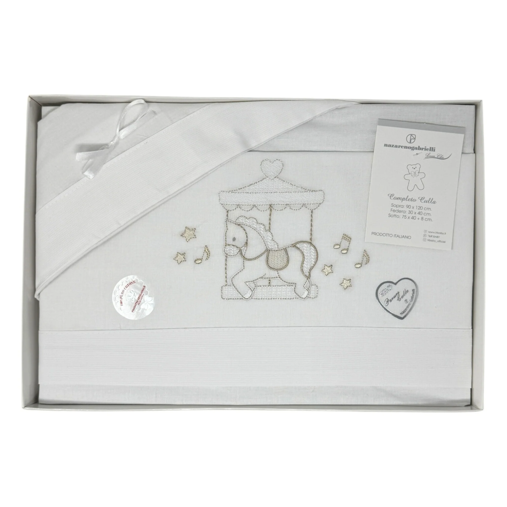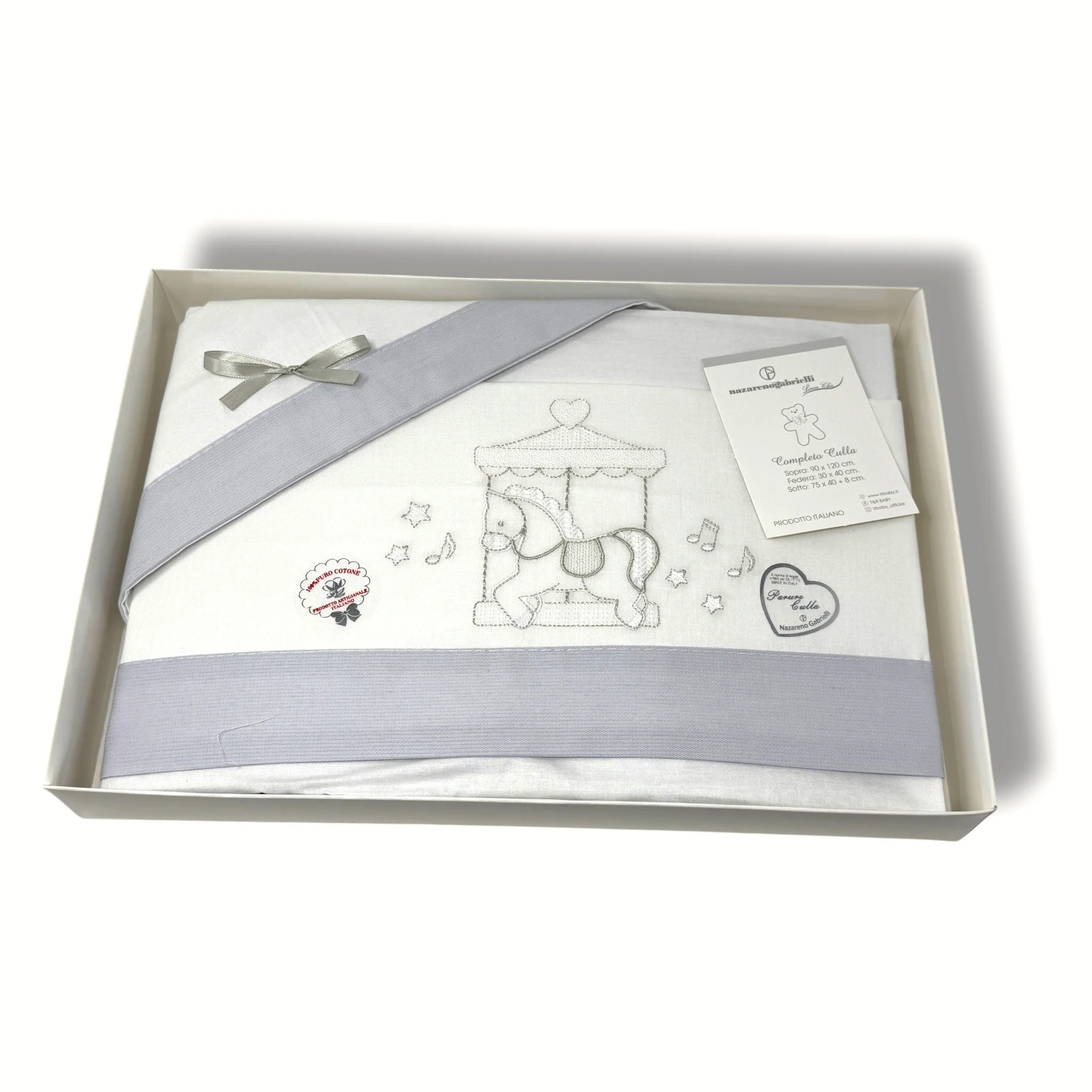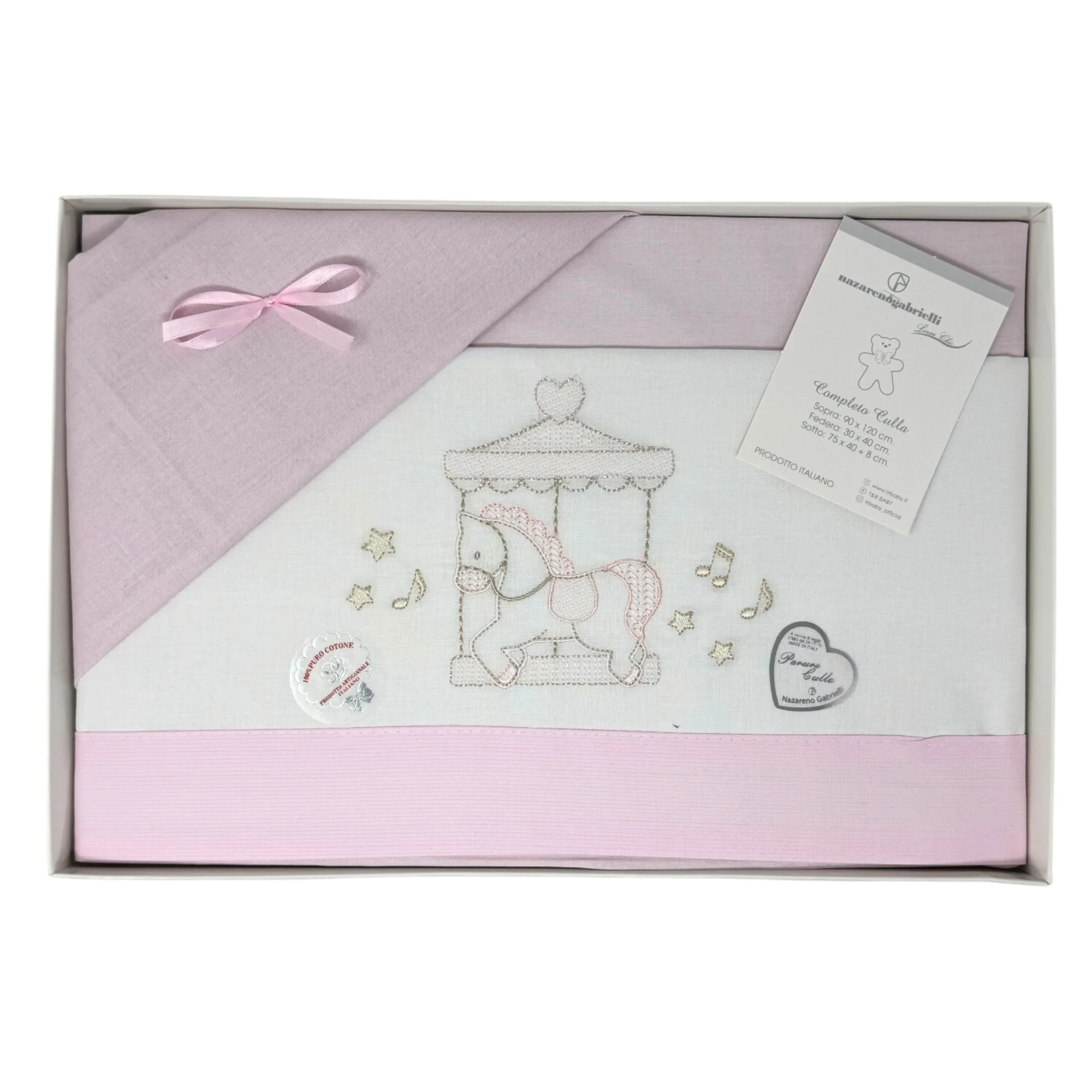 -nazareno Gabrielli- Completo Lenzuola 3 Pezzi Carrozzina Ricamata 90×120 Art. Ng91-46