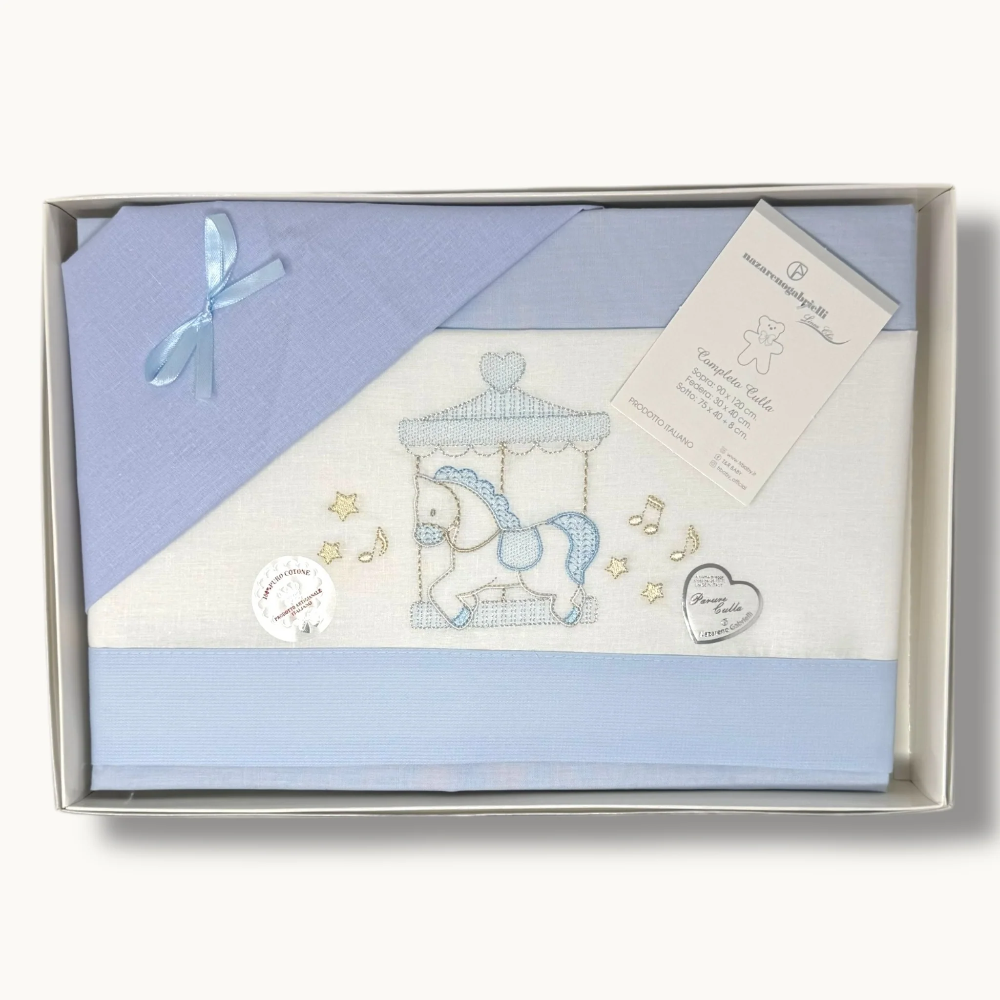 -nazareno Gabrielli- Completo Lenzuola 3 Pezzi Carrozzina Ricamata 90×120 Art. Ng91-10