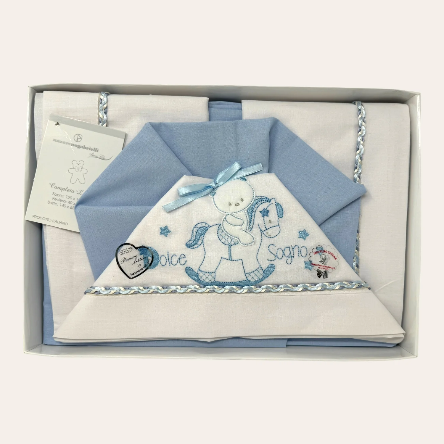 Ng101-3 – Nazareno Gabrielli Completo Lenzuola 3 Pezzi Lettino Ricamata 120×180