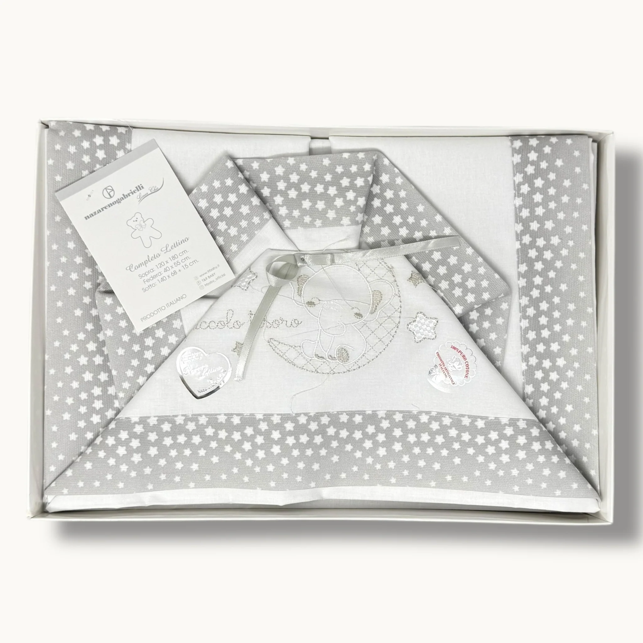 Ng101-41 – Nazareno Gabrielli Completo Lenzuola 3 Pezzi Lettino Ricamata 120×180
