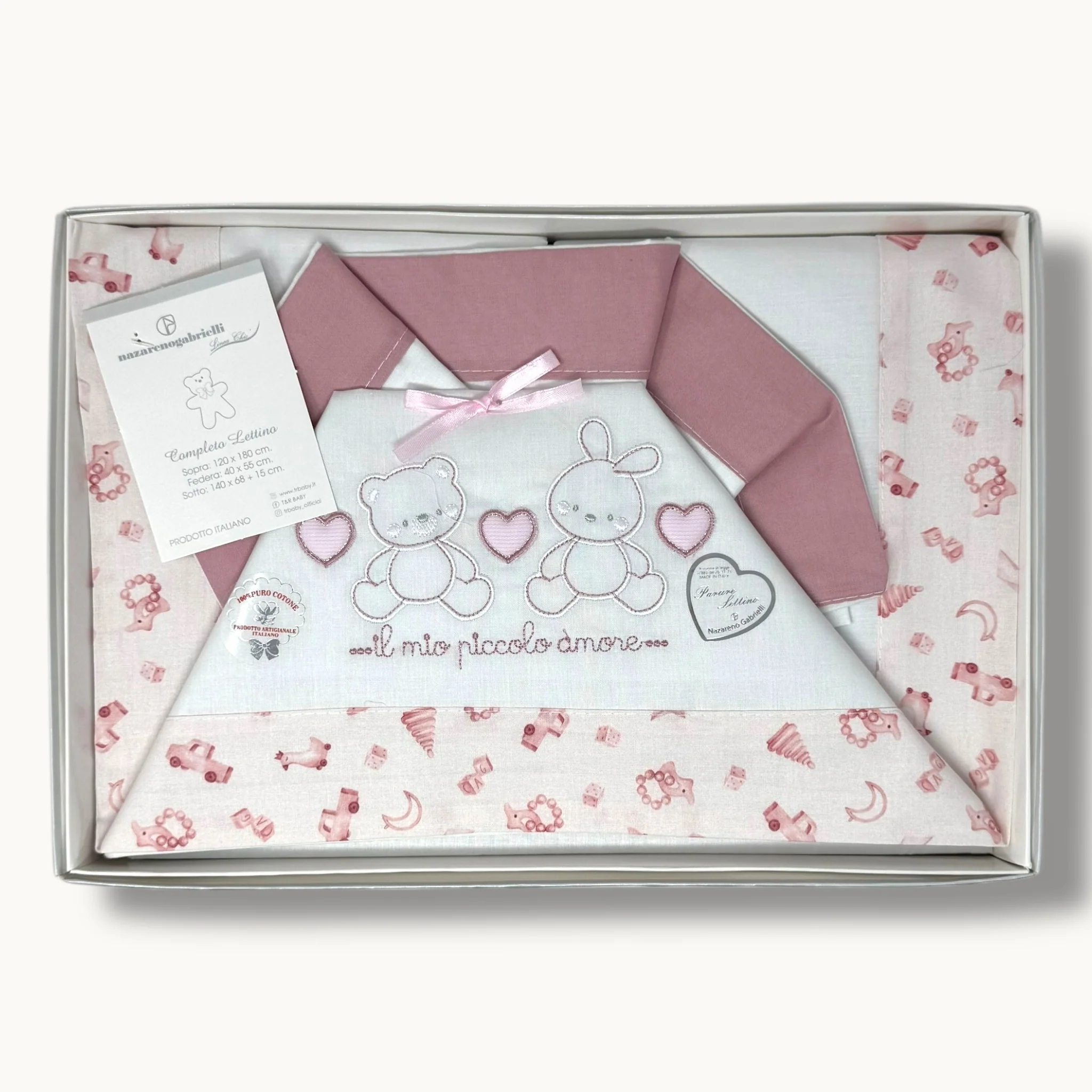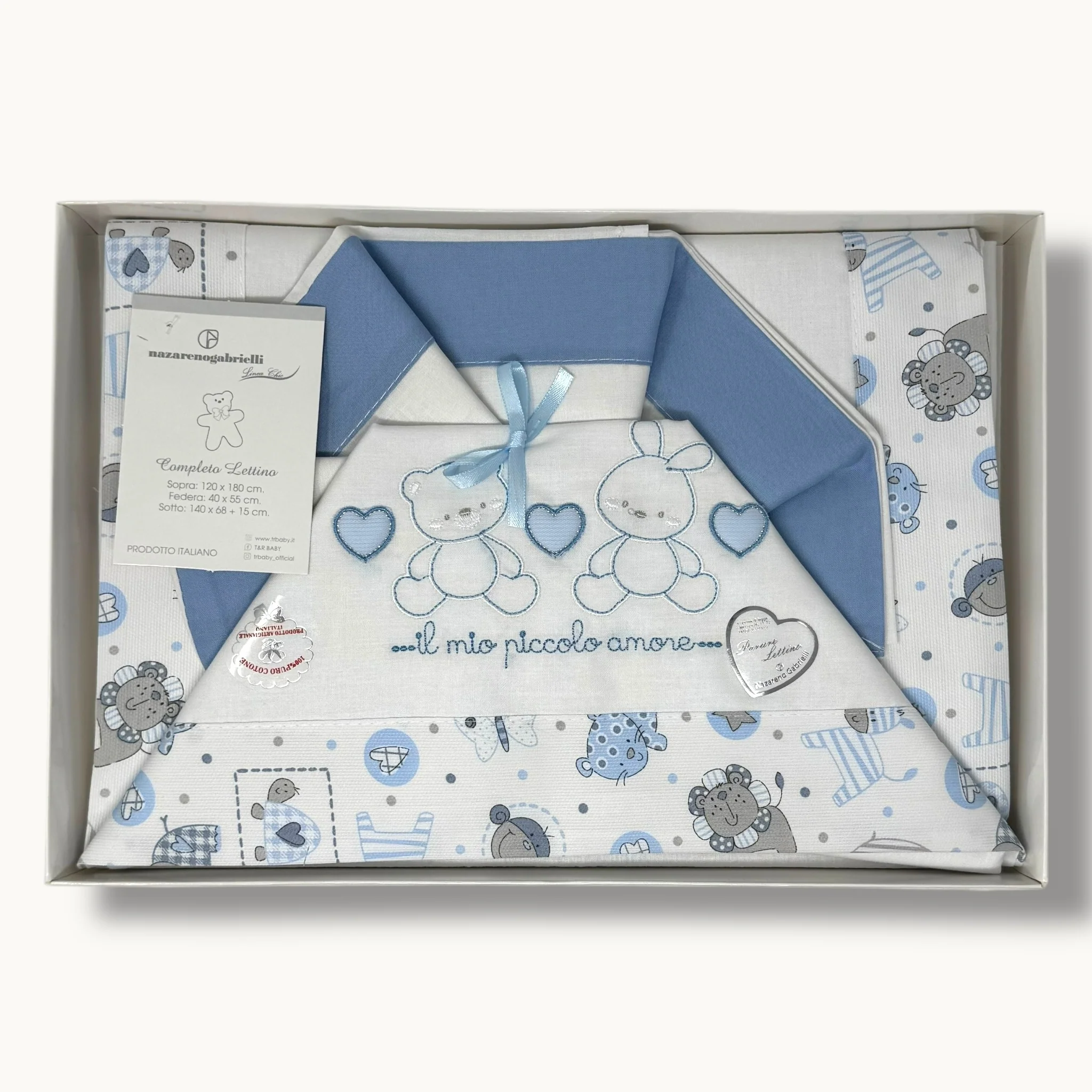 Ng101-45 – -nazareno Gabrielli- Completo Lenzuola 3 Pezzi Lettino Ricamata 120×180