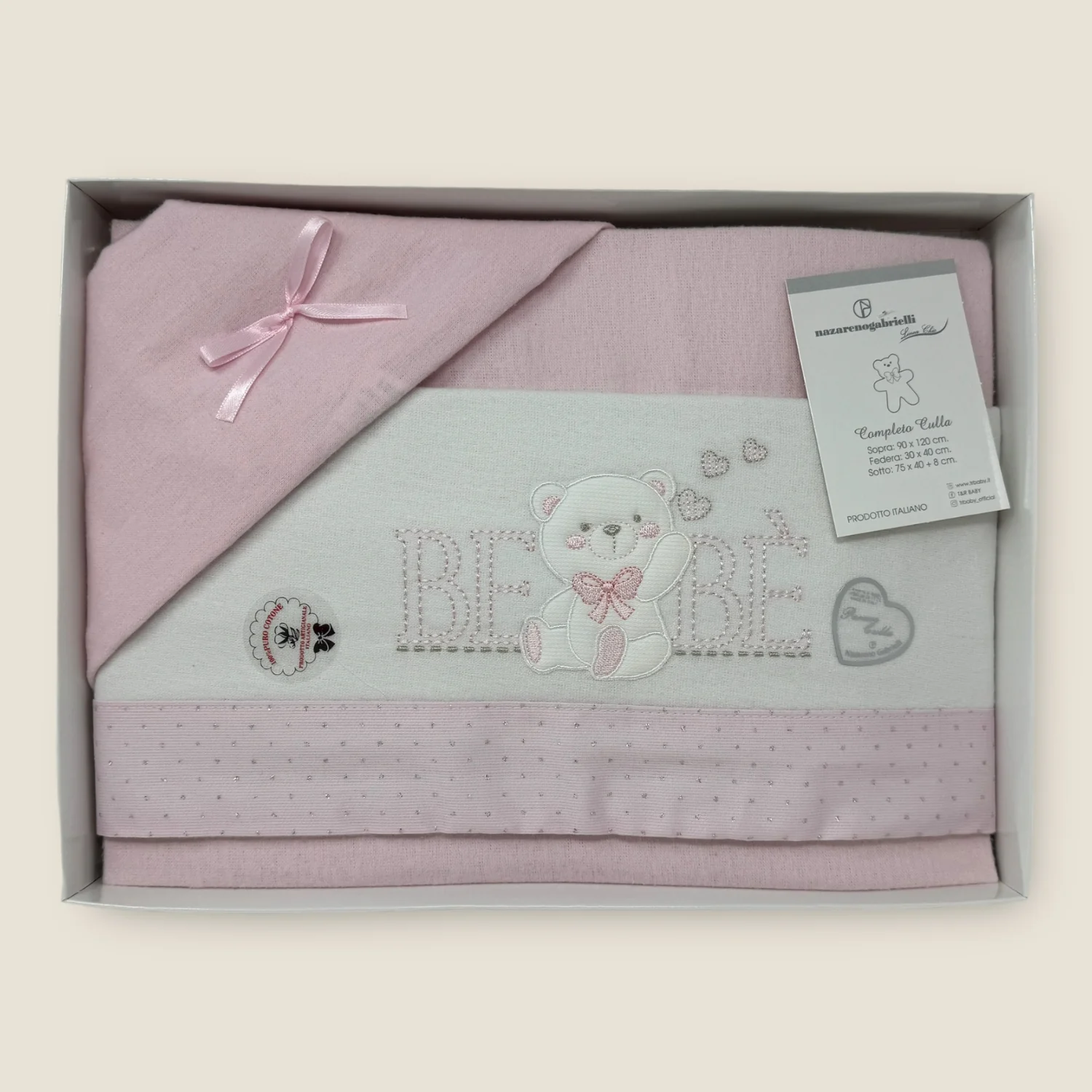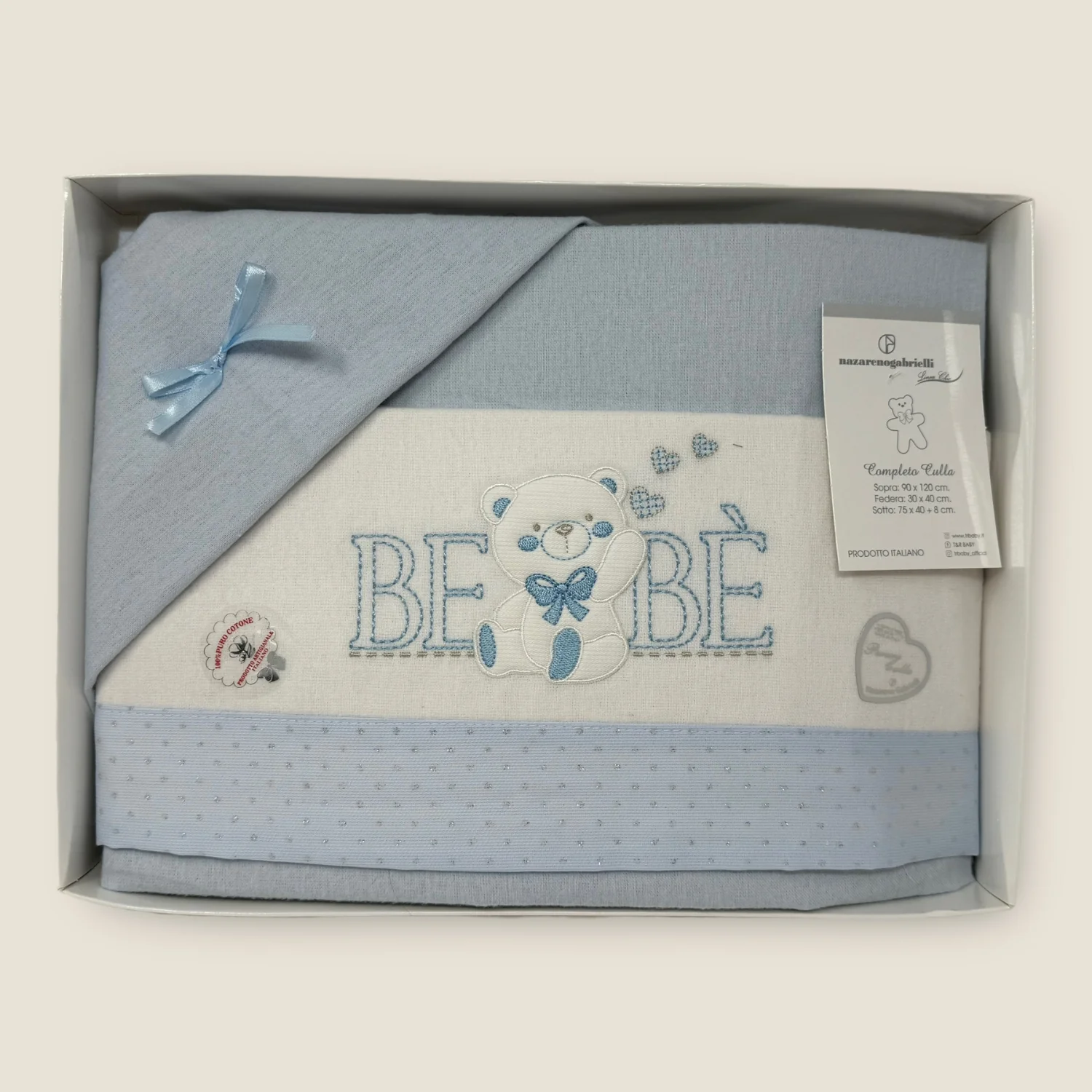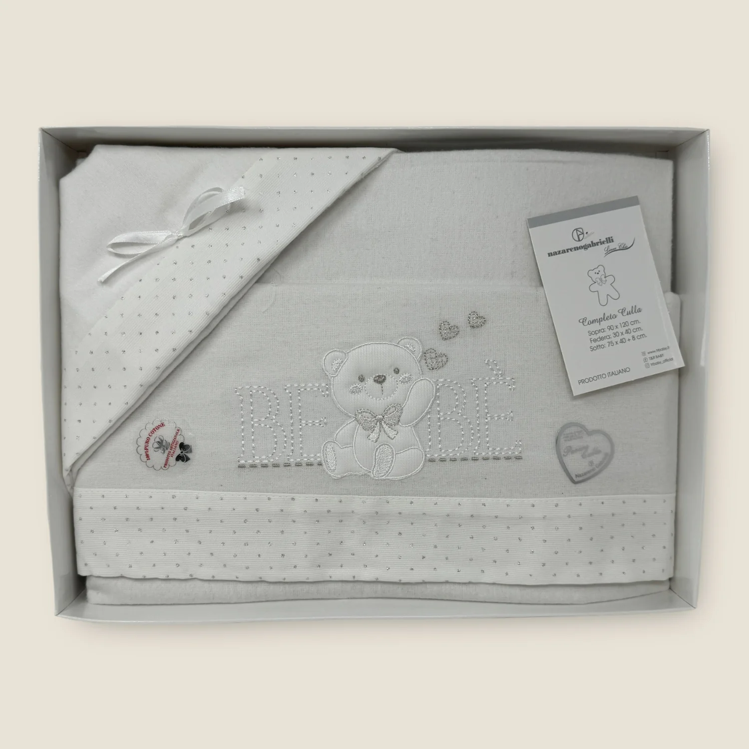 Ng270-2 – Nazareno Gabrielli Completo Lenzuola In Flanella 100%cotone Per Carrozzina 90×120 Ricamata