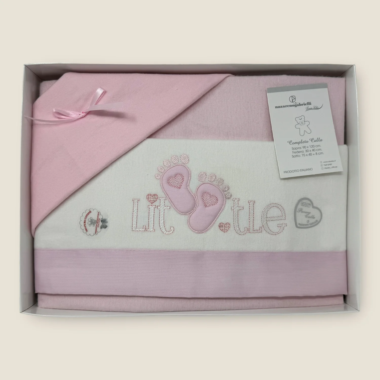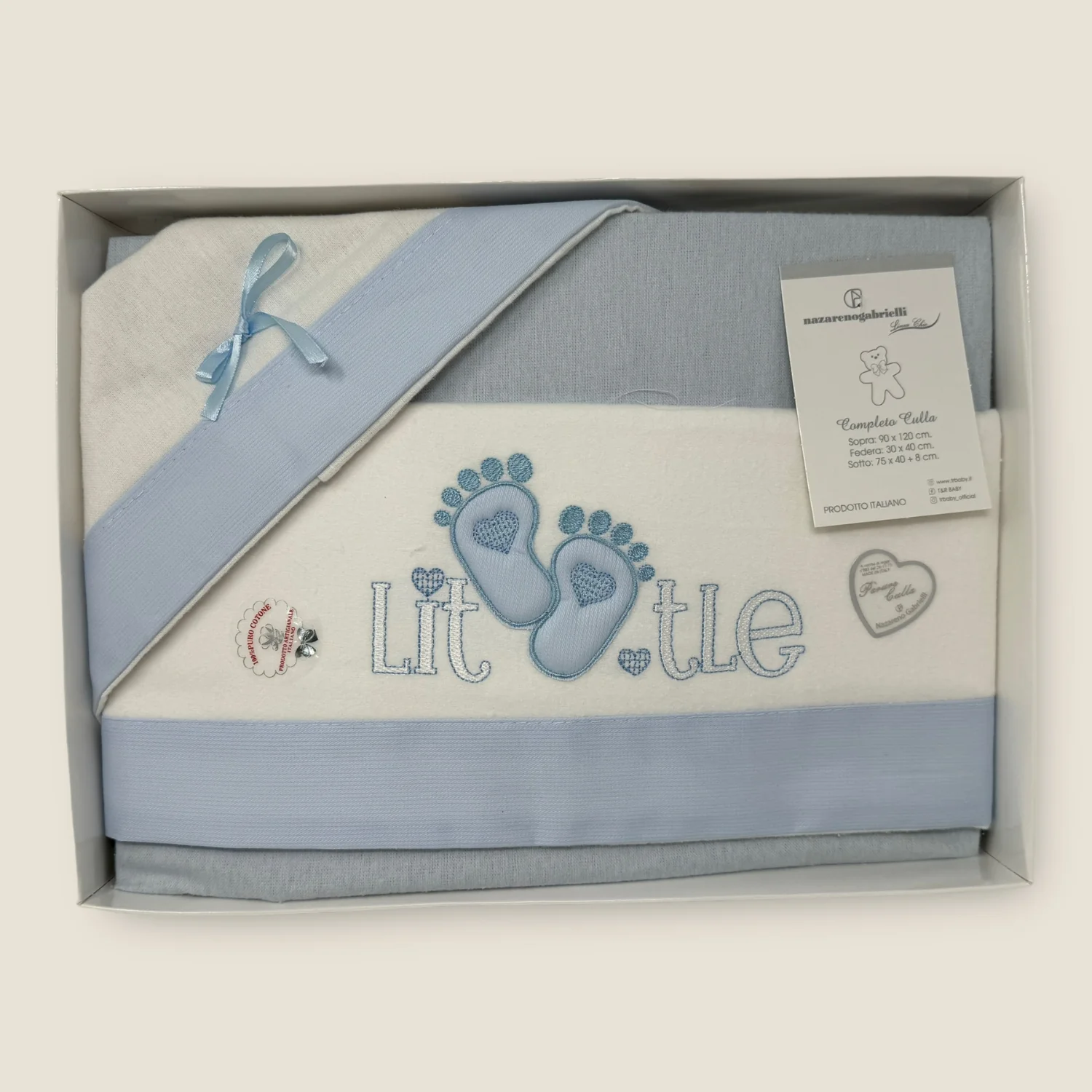 Ng270-5 – Nazareno Gabrielli Completo Lenzuola In Flanella 100%cotone Per Carrozzina 90×120 Ricamata