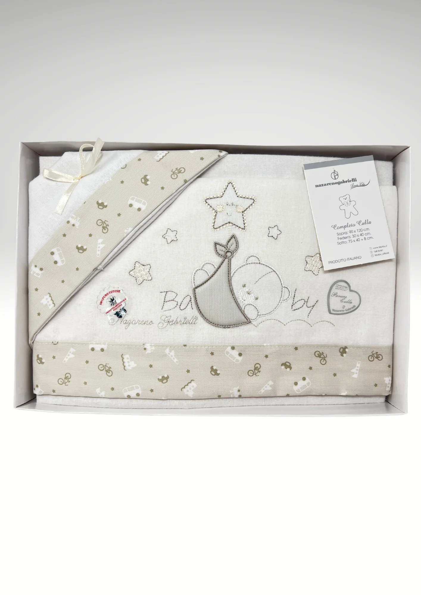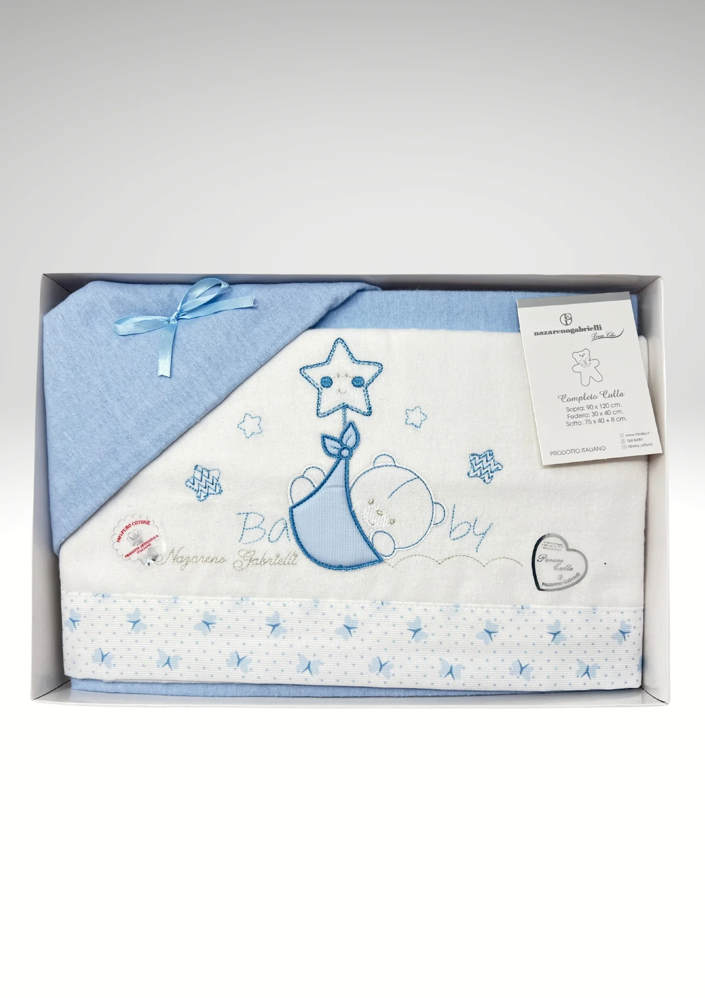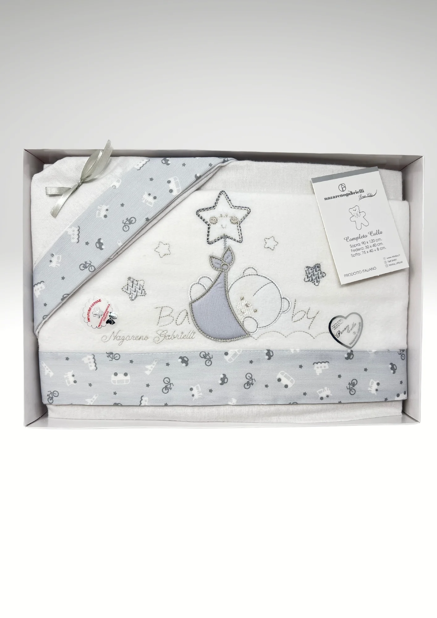 Ng270/29 – Nazareno Gabrielli Completo Lenzuola In Flanella 100%cotone Per Carrozzina 90×120 Ricamata