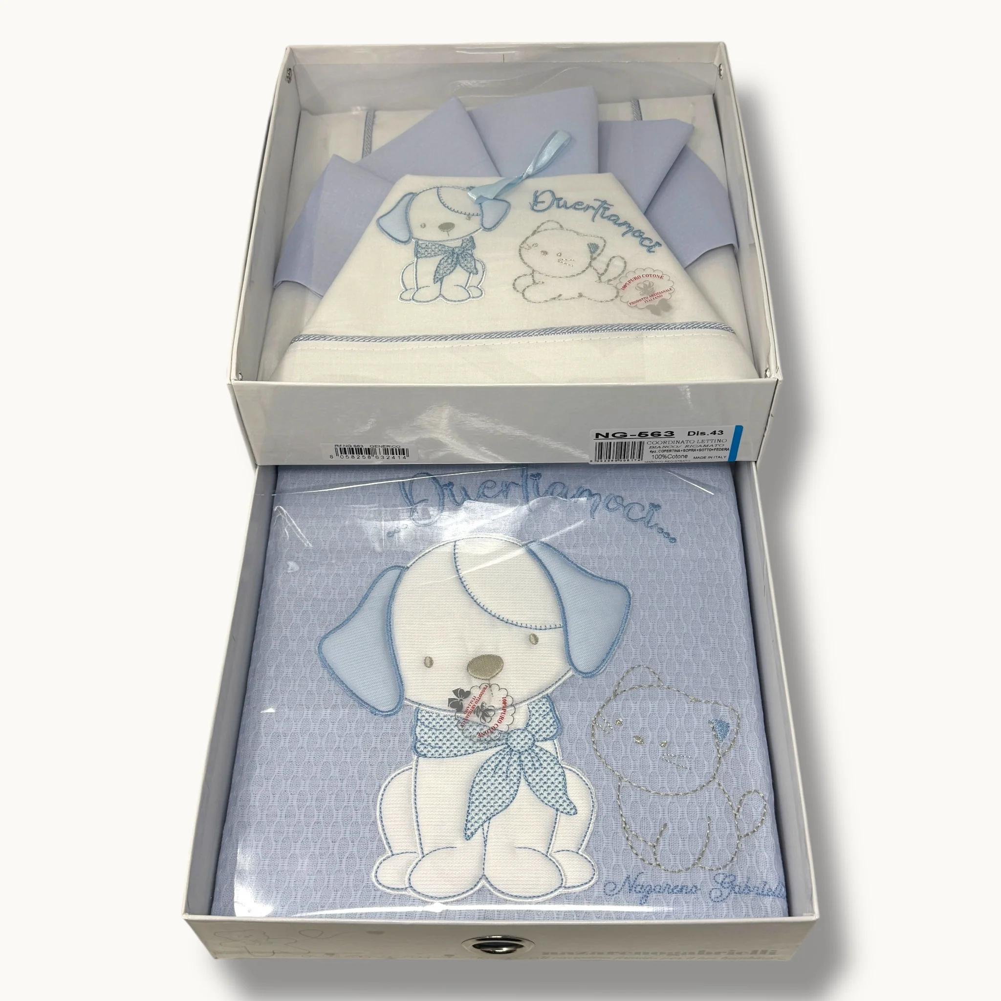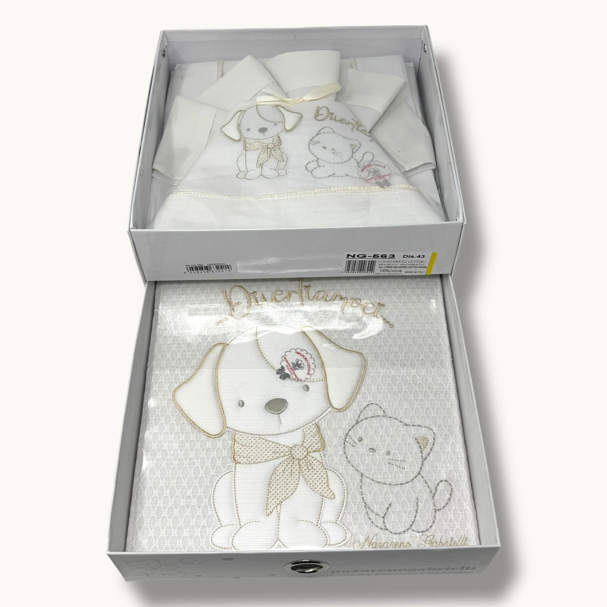 Ng563-43 – Nazareno Gabrielli Coordinato Copertina Piquet+completo Lenzuola Per Lettino Grande Cotone Ricamato