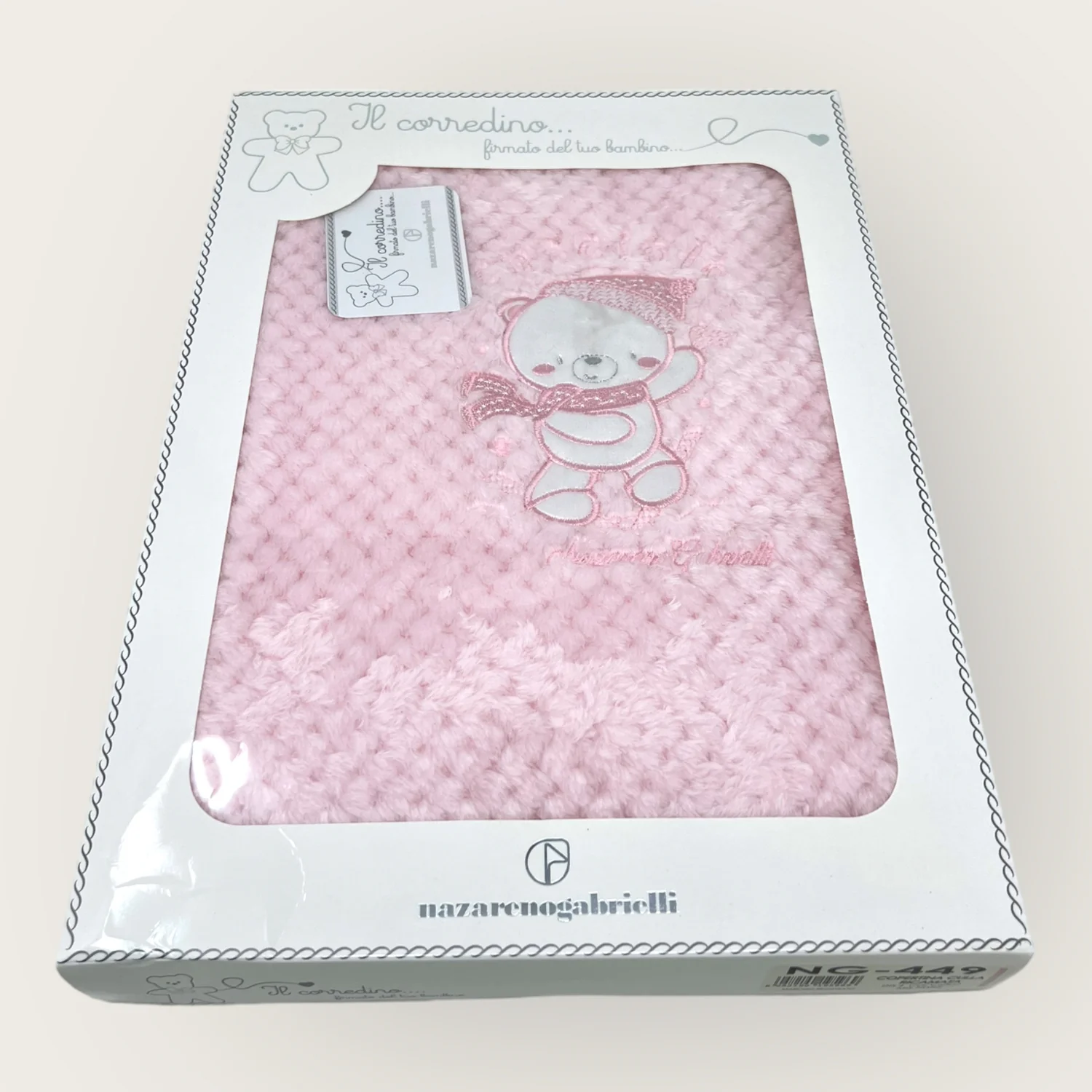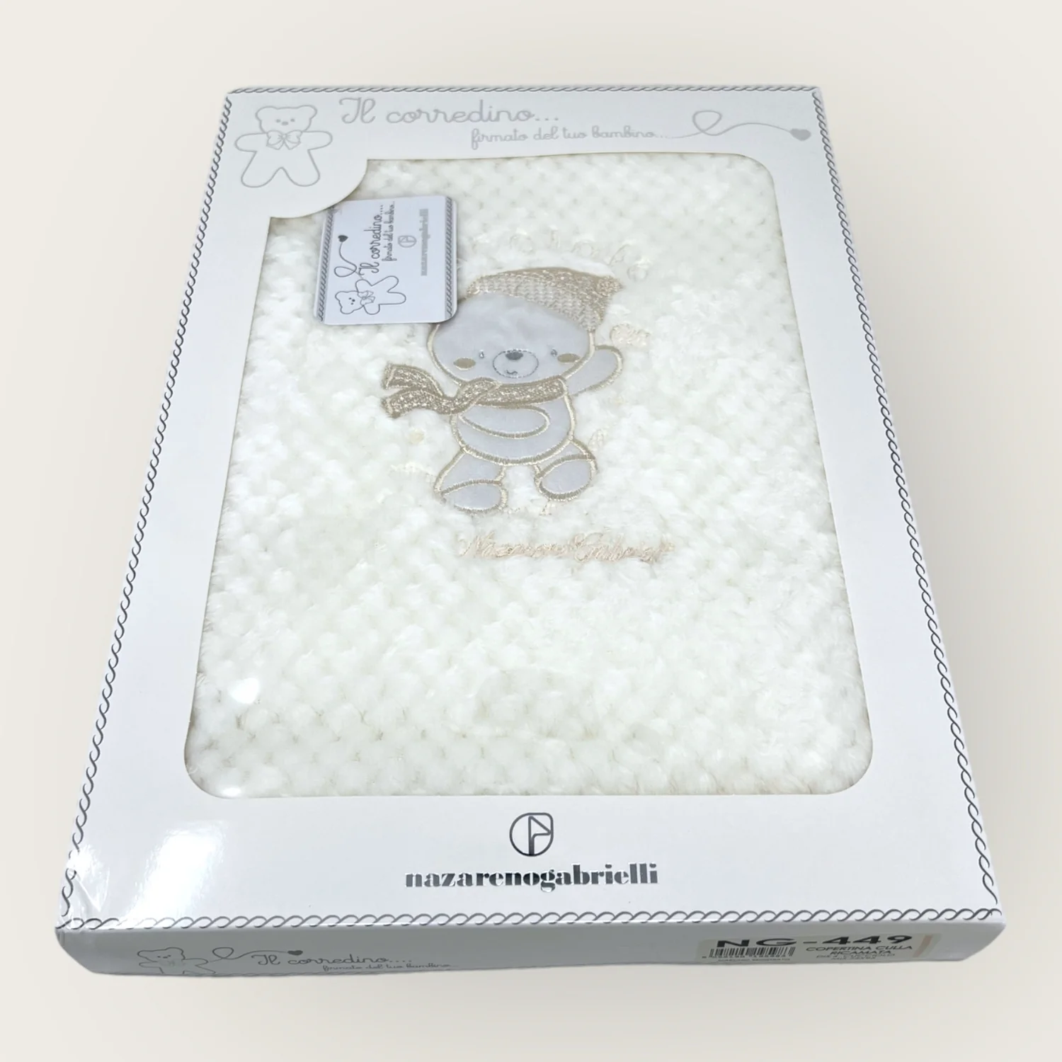 -nazareno Gabrielli Baby- Copertina Culla Ricamo Orsetto In Filo Di Puro Cotone Art. Ng492-1