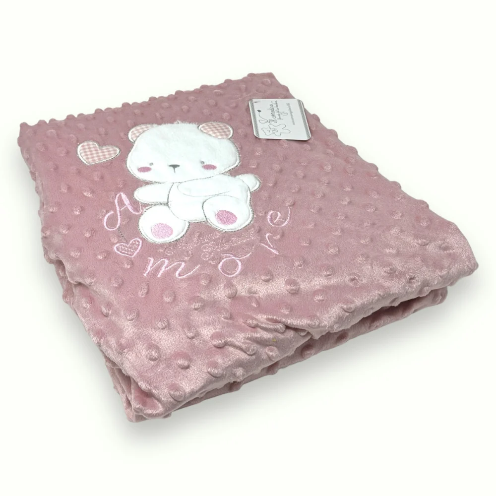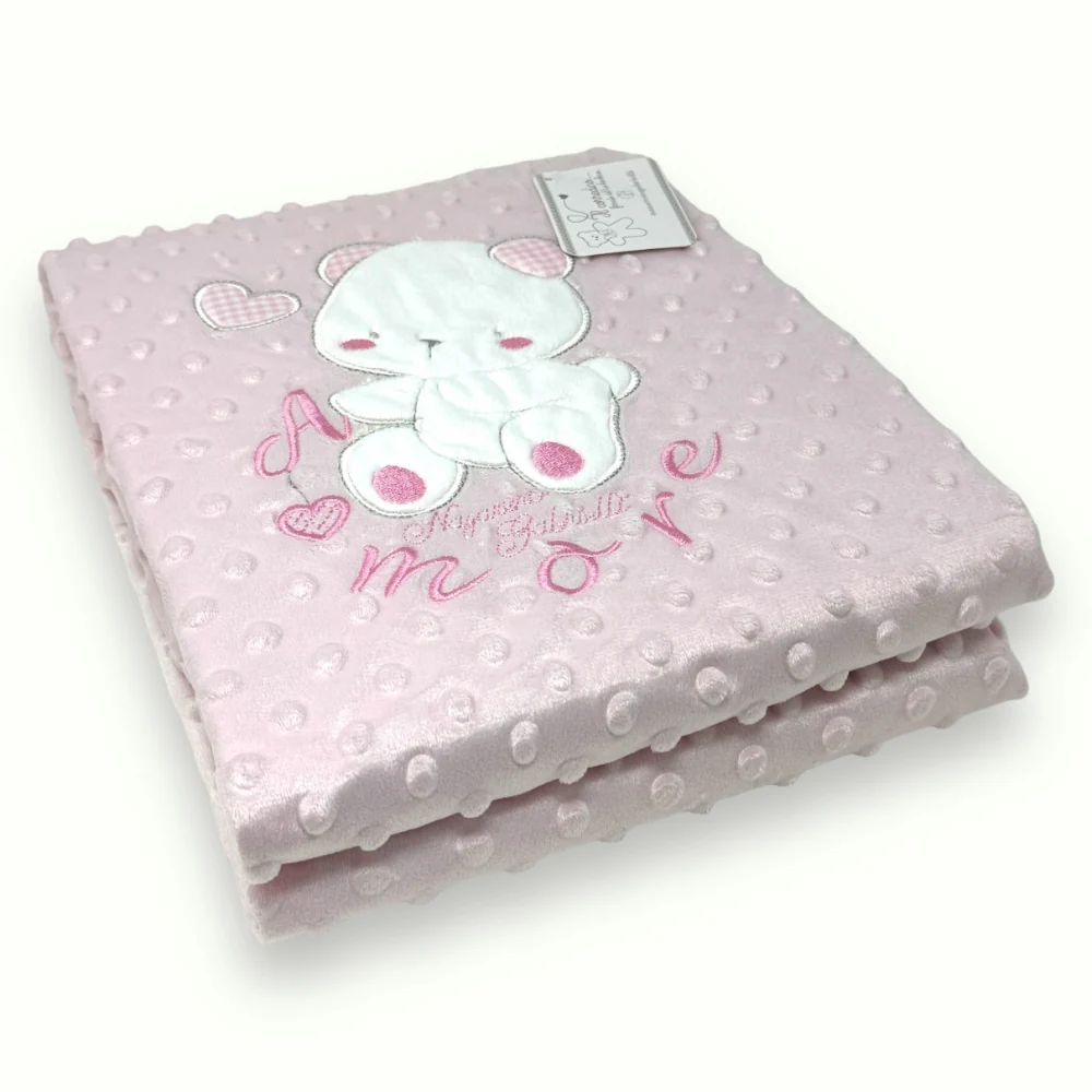-irge Baby- Copertina Culla Lana -imbottitura In Coral- Con Applicazione E Ricamo Mis. 75×100 Art. Antonia
