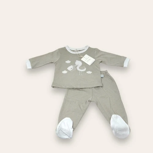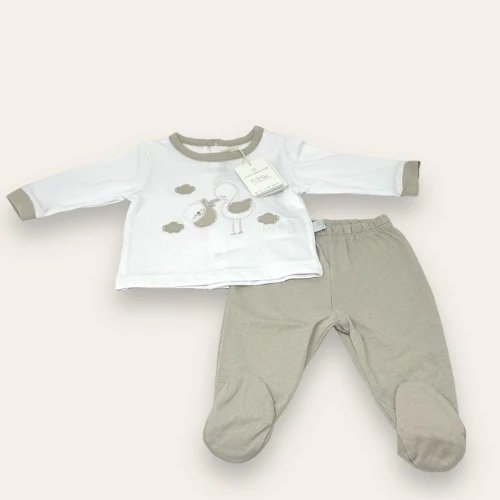 Nazareno Gabrielli Neonato Completo Clinico 2 Pezzi In Puro Cotone Con Applicazioni E Ricami Art. Ng3320-3