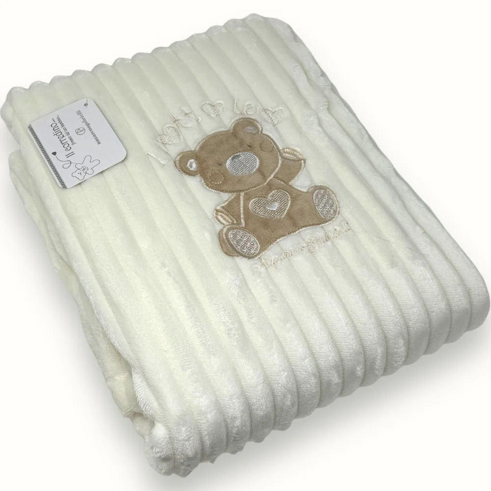 -irge Baby- Copertina Culla Lana -imbottitura In Coral- Con Applicazione E Ricamo Mis. 75×100 Art. Antonia