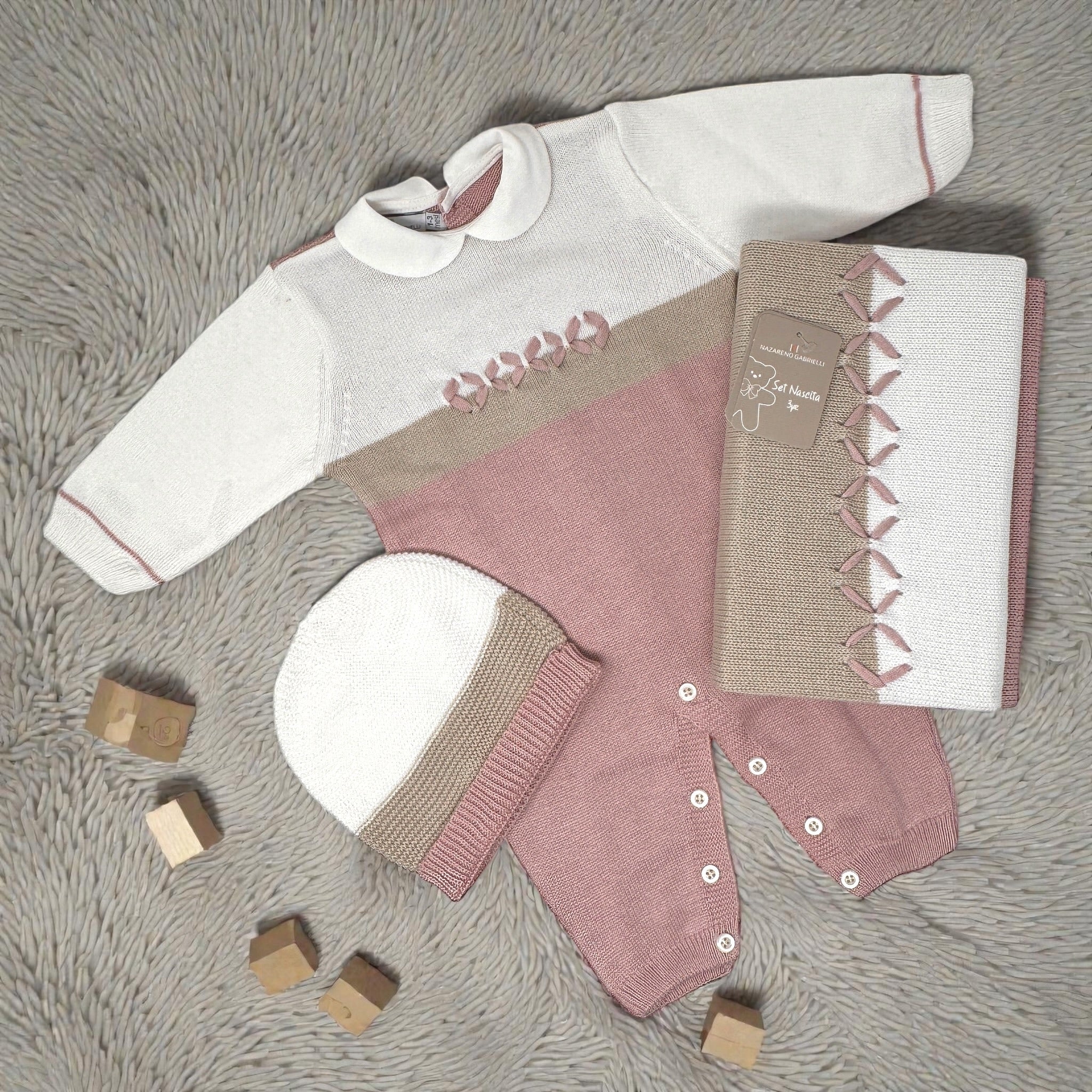 Nazareno Gabrielli Set Nascita 3 Pezzi (copertina+tutina+cappellino) In Filo Di Puro Cotone Art. Ng3485-8