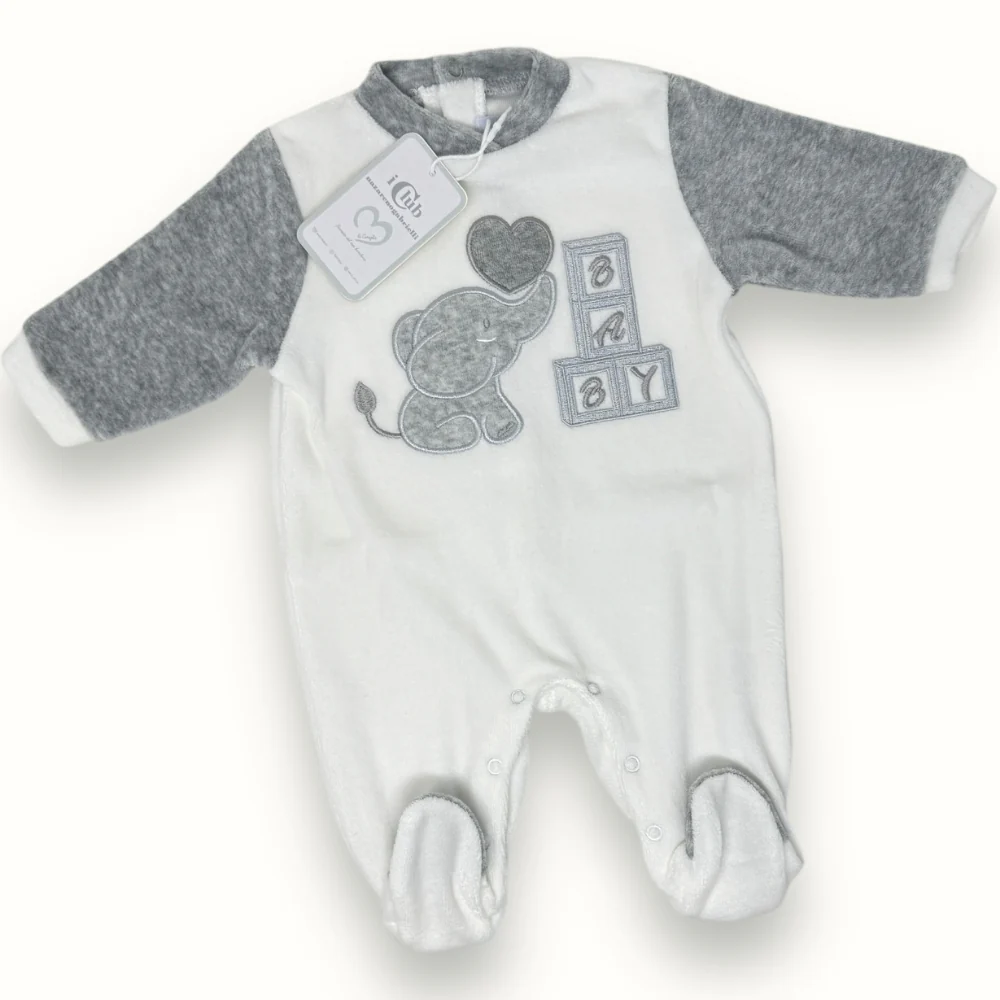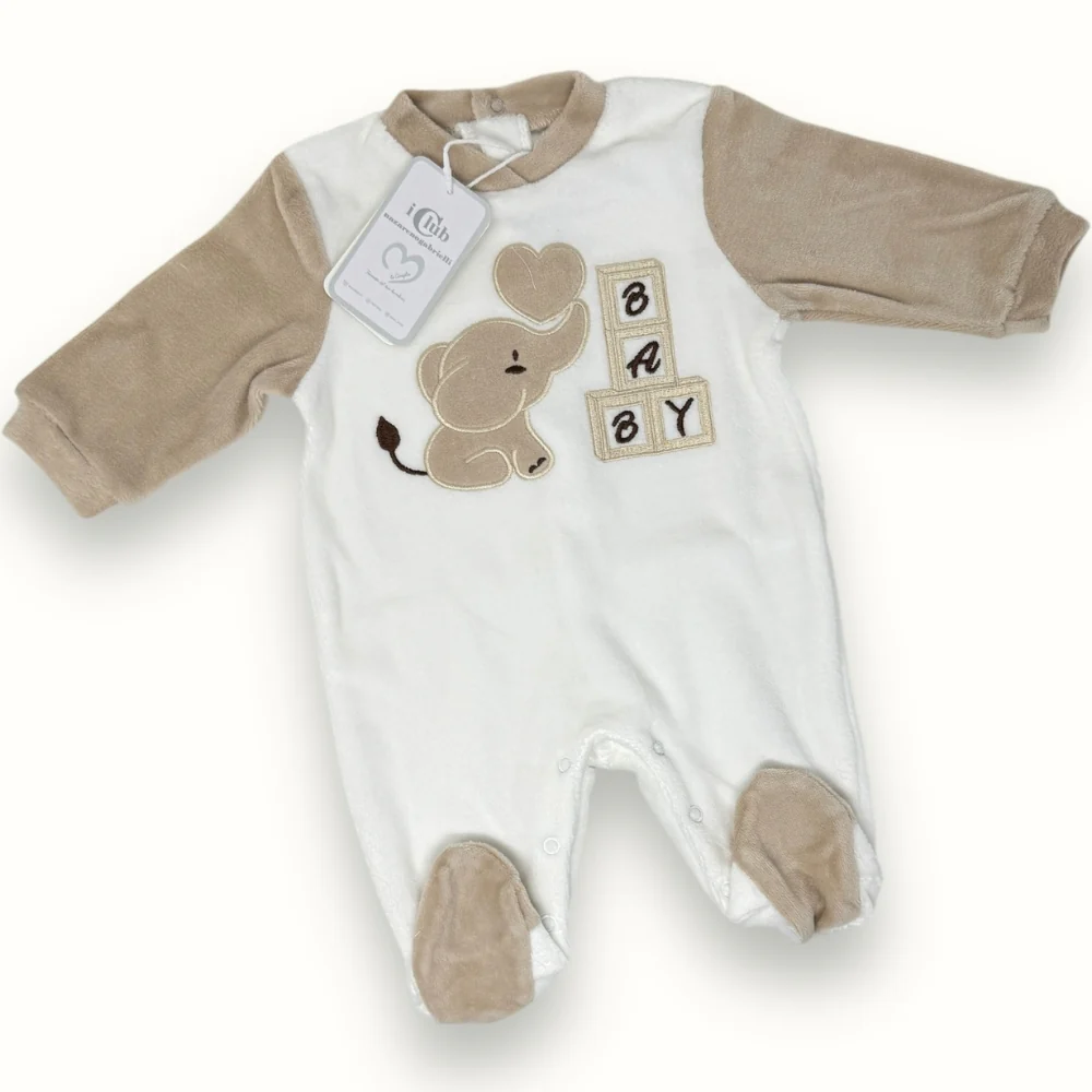 Ng625-20 – -nazareno Gabrielli- Tutina Baby (colori Neutri) In Morbida Ciniglia -di Cotone- Ricamata
