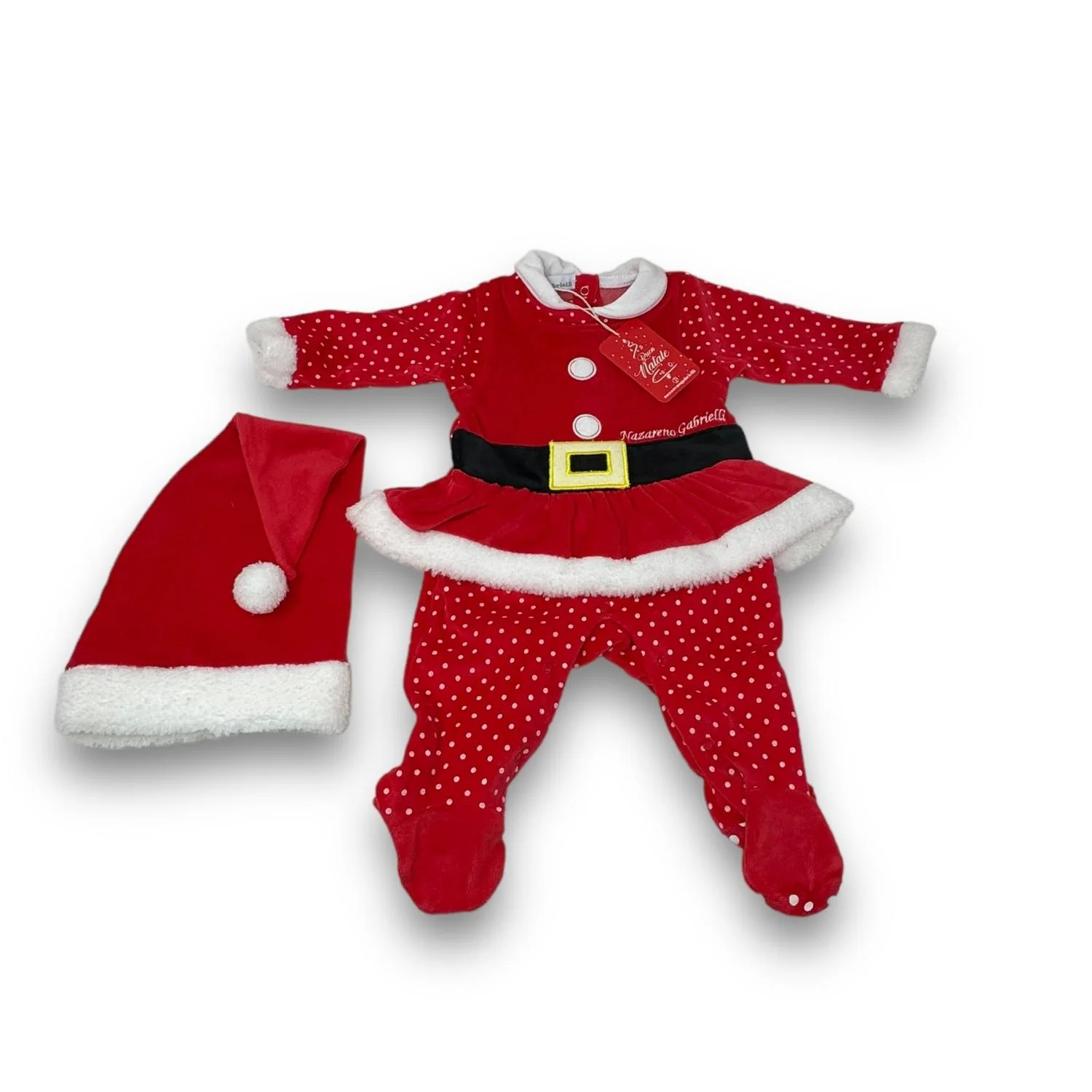 Nazareno Gabrielli Tutina Natale Gonnellina Neonata In Ciniglia Con Cappello Art. Ng2219