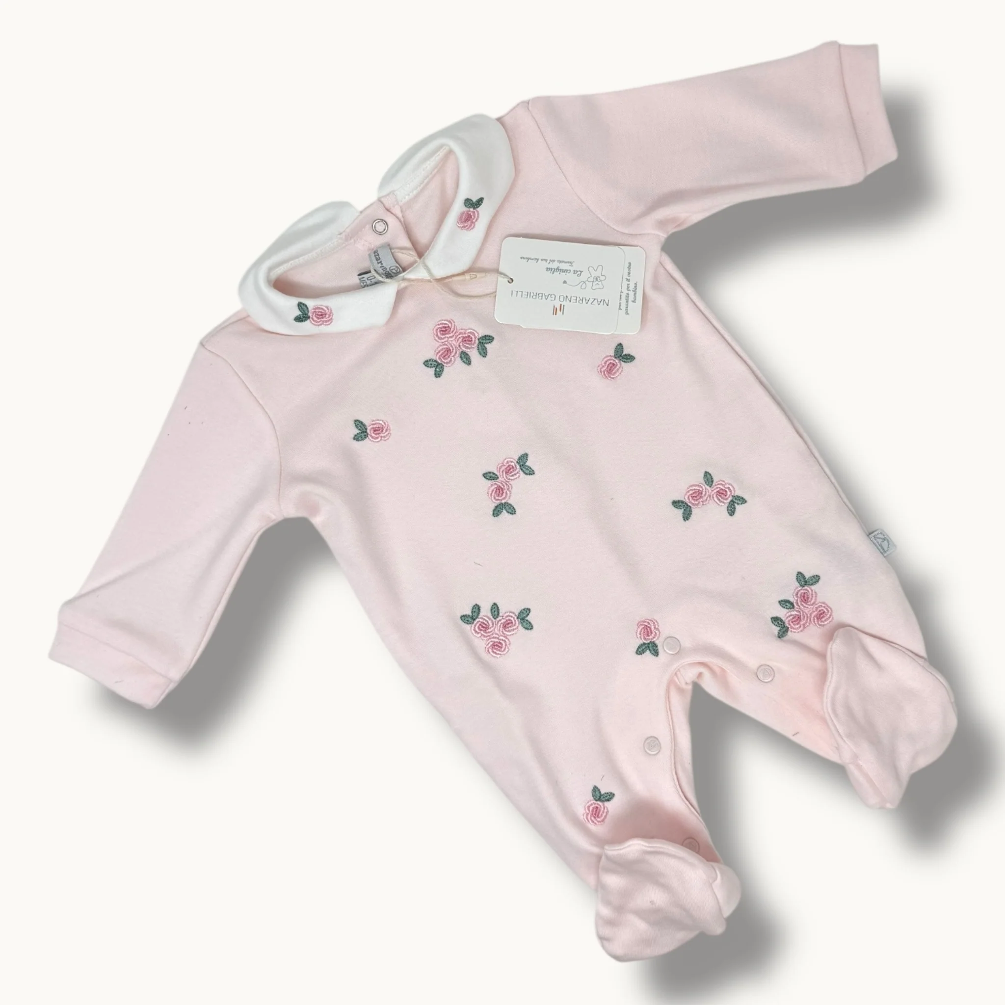 ng2212-40 – Nazareno Gabrielli Tutina Neonata In Caldo Cotone 100% Con Ricamo E Applicazione