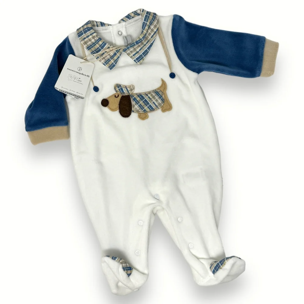 Nazareno Gabrielli – Tutina Neonato Di Ciniglia In Cotone Con Applicazioni Art. Ng2110-23
