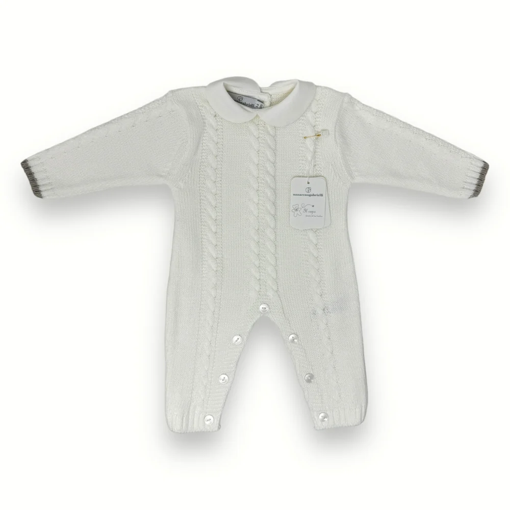 Nazareno Gabrielli – Tutina Neonato E Neonata In Mano Lana Disegno Treccia Art. Ng2041-3
