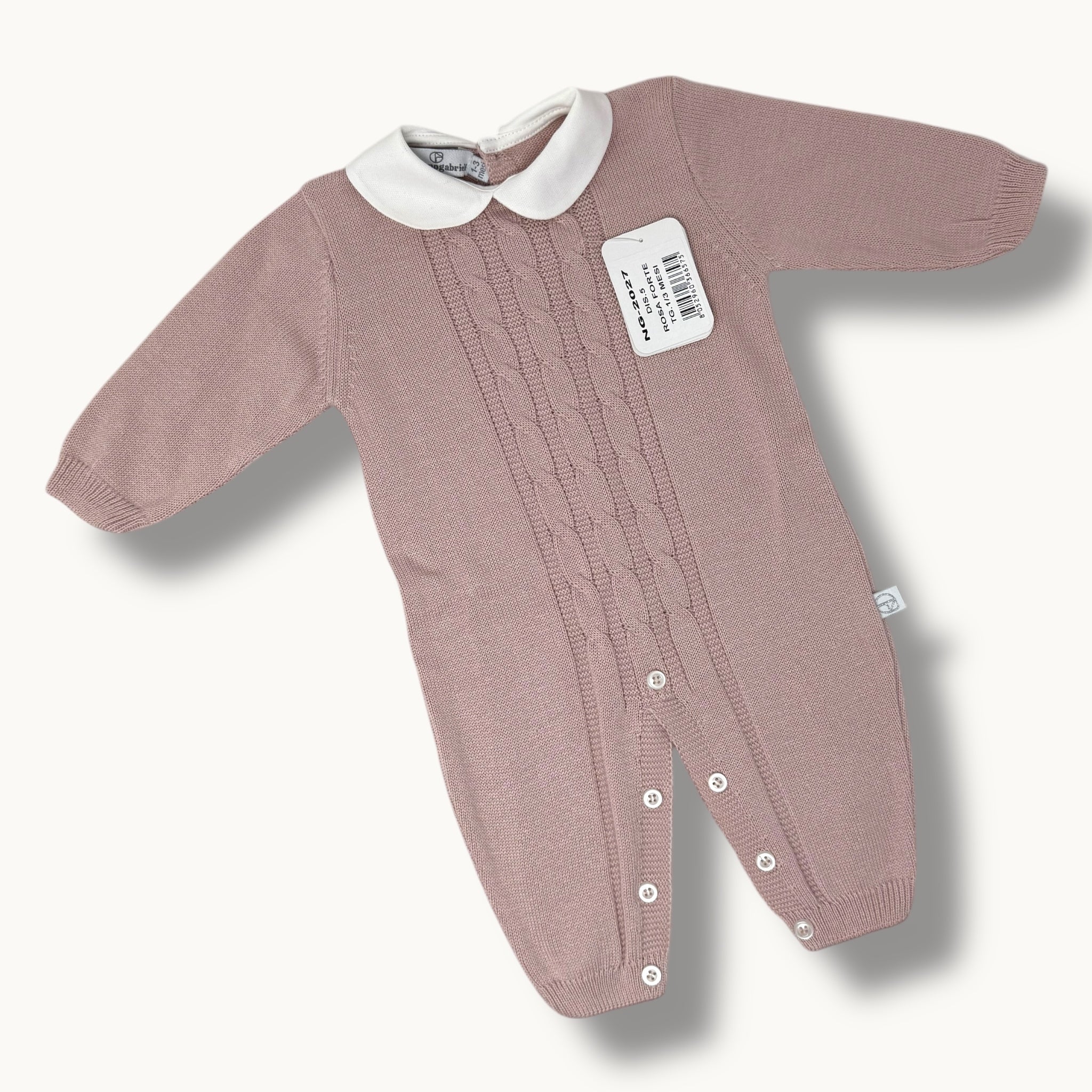 -nazareno Gabrielli- Tutina Neonato-neonata In Filo Di Puro Cotone Disegno Treccia Art. Ng2027-5