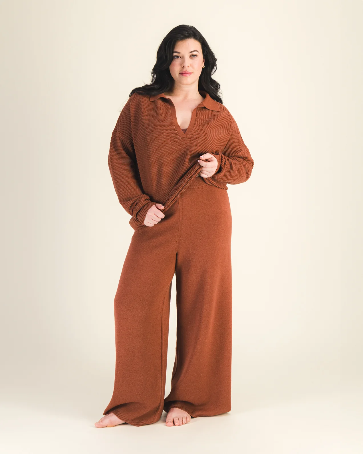 • Pantalon style ” jogging” en maille très épaisse• Taille élastiquée en élasthanne très extensible• Jambes évasées