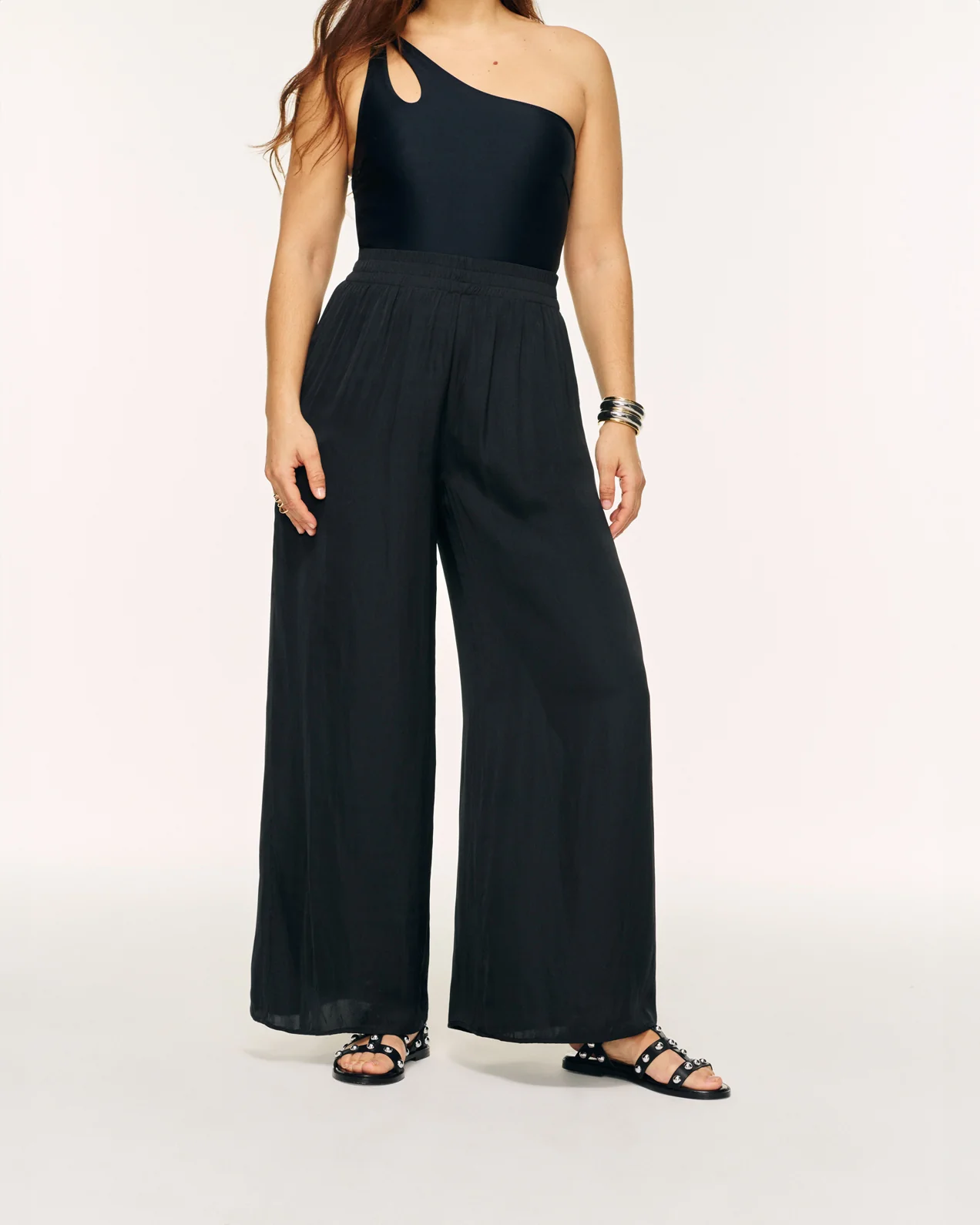 • Pantalon fluide• Jambes larges palazzo• Taille élastiquée• Poches côtés