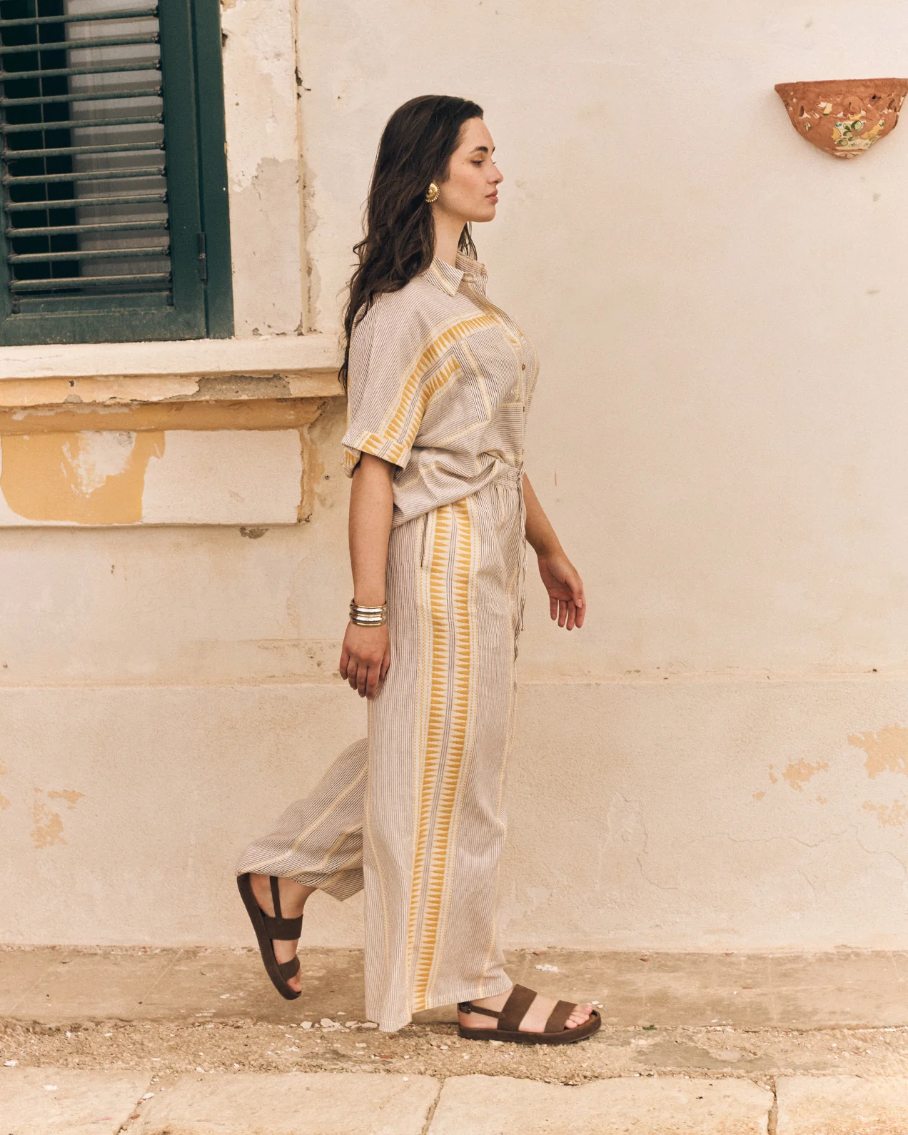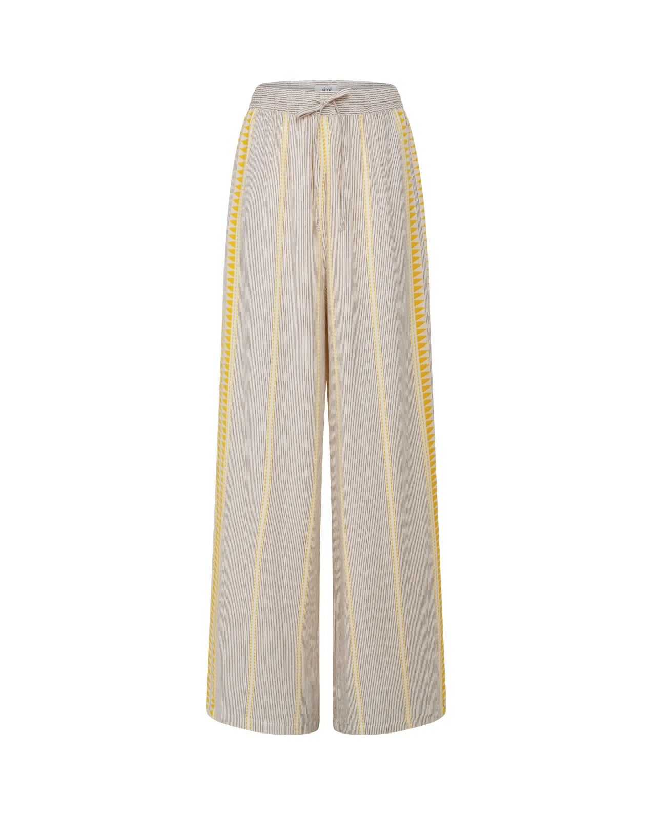 • Pantalon large• Jambes palazzo• Motif à rayures• Taille élastiquée avec cordon de serrage• Poches côtés