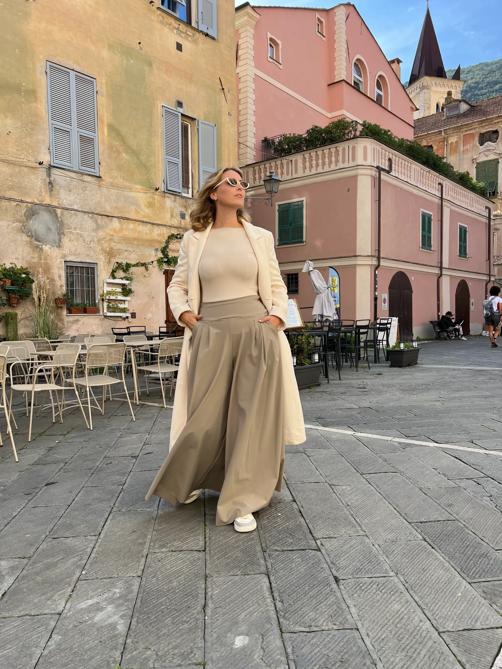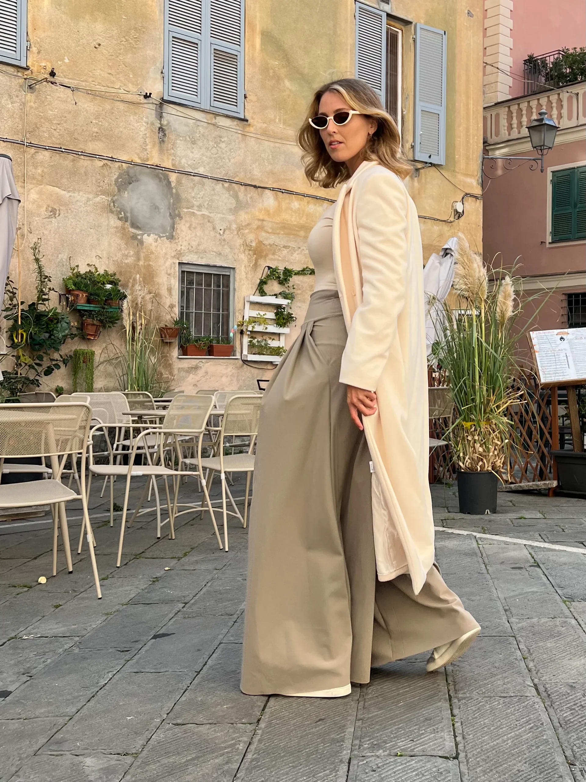Nati per unire comfort assoluto ed eleganza senza tempo, i Pantaloni Samurai sono il capo che ti fa sentire comoda, libera e super chic in ogni occasione. Il tessuto Sapporo italiano e la manodopera artigianale torinese rendono questo capo un’eccellenza del Made in Italy autentico.