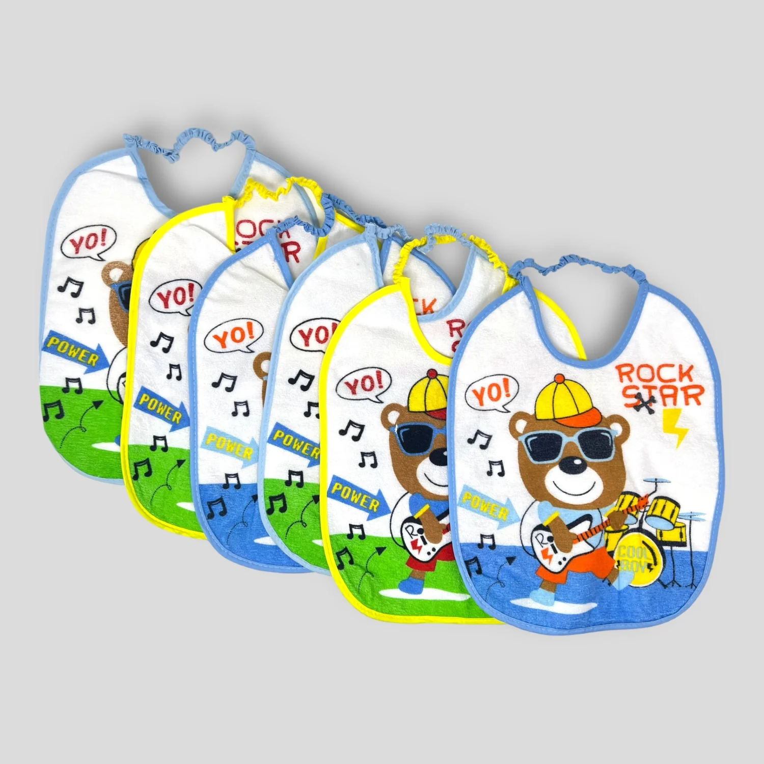 Bav9069m – Pastello 6 Pezzi Bavetta Grande In Spugna Plastificata Stampata Con Elastico Art. Bav9069m