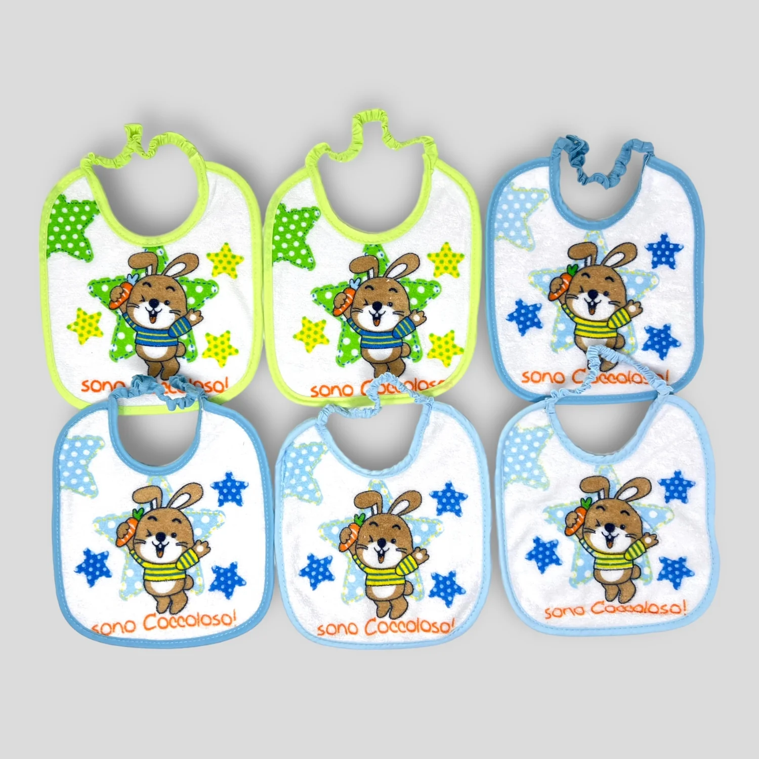 Bav9057m – Pastello 6 Pezzi Bavetta Media In Spugna 100% Cotone Stampata Con Elastico Art. Bav9057m