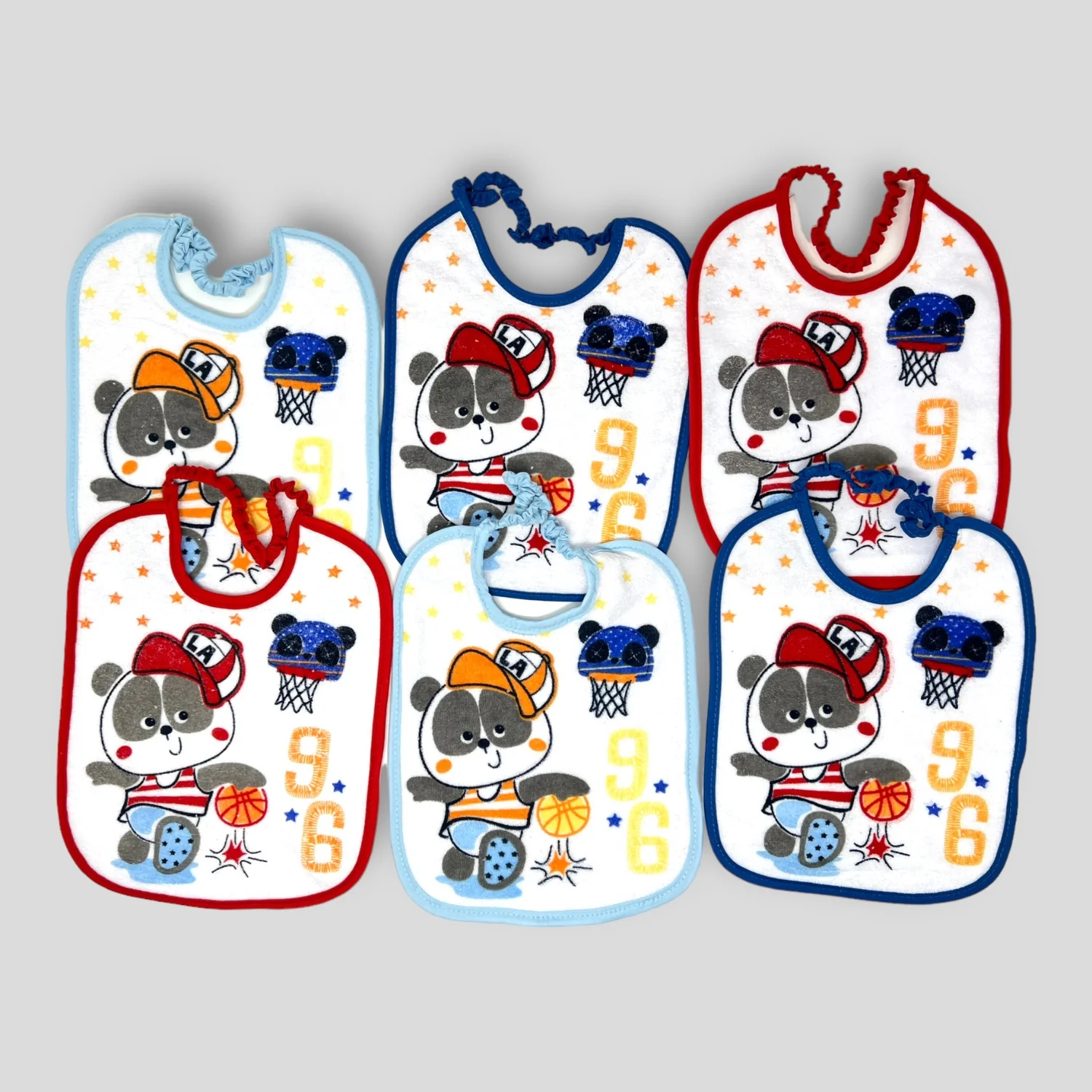 Bav9065m – Pastello 6 Pezzi Bavetta Media In Spugna 100% Cotone Stampata Con Elastico Art. Bav9065m