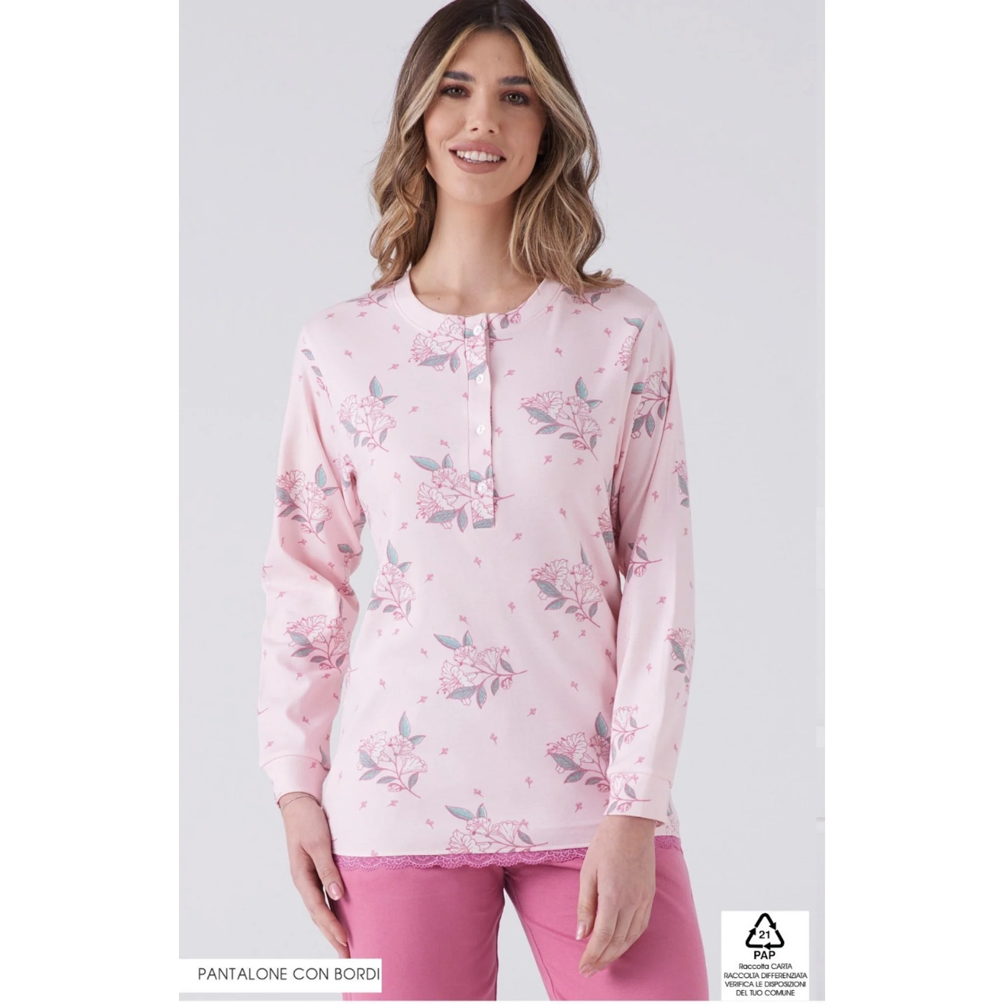 4101lx – Pigiamiamoci Donna Pigiama Calibrato Serafino Fantasia (pantaloni Con Bordo) In Caldo Cotone