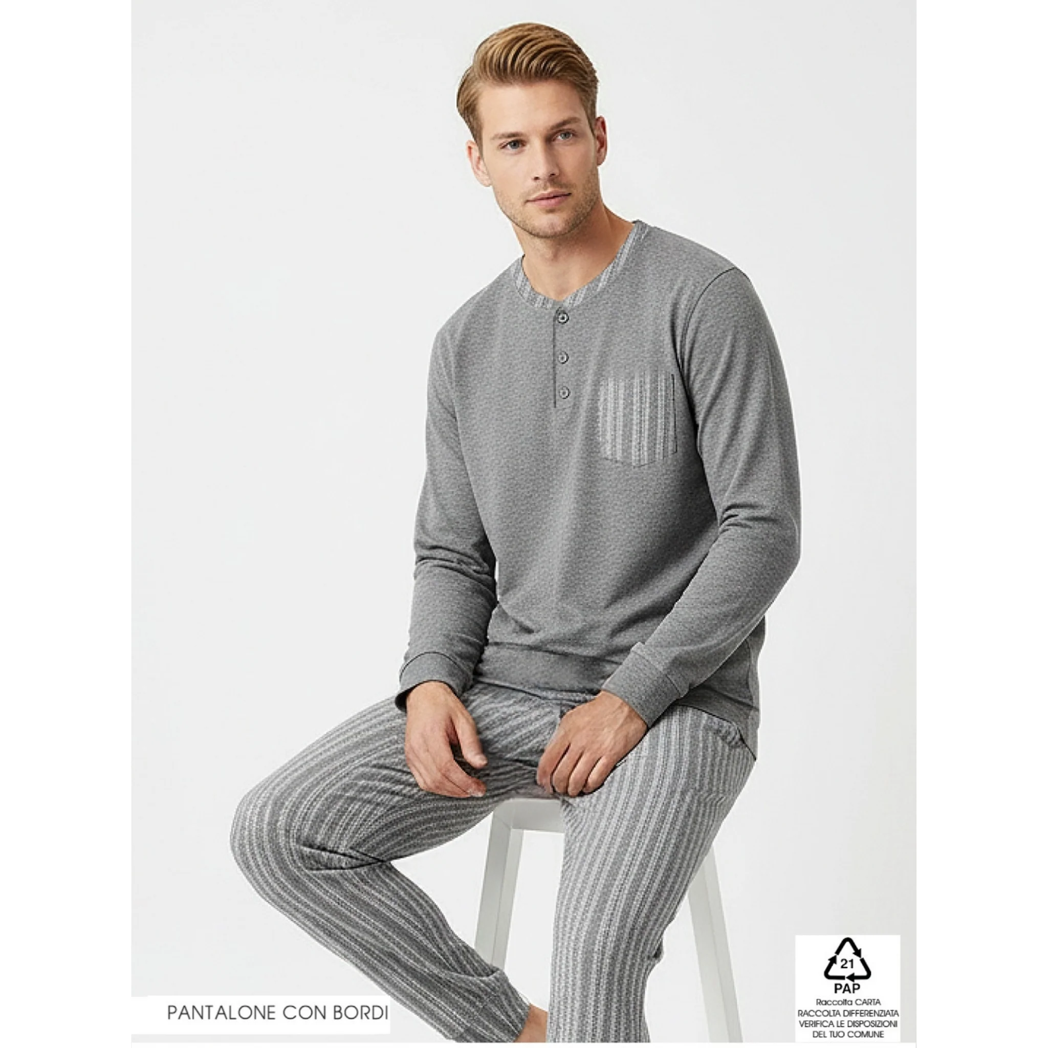 4219l – Pigiamiamoci Uomo Pigiama Serafino Punto Milano Con Taschino E Pantalone Fantasia
