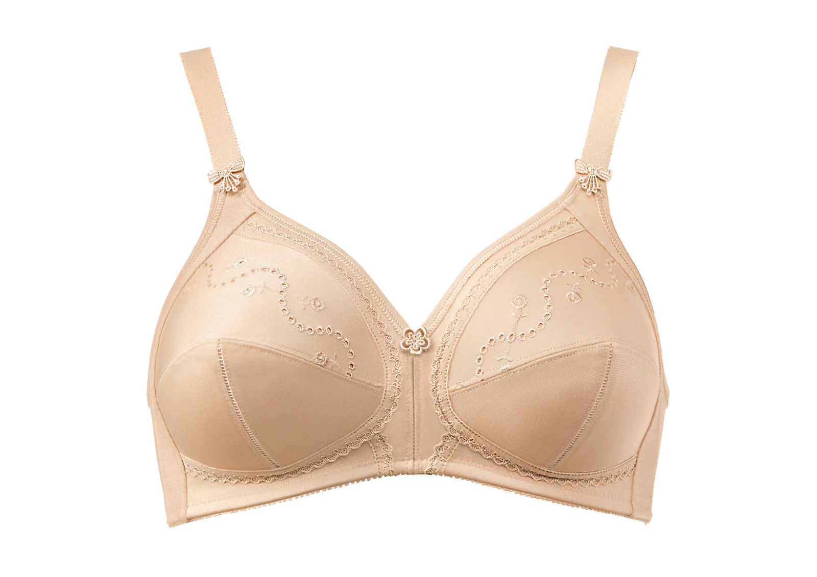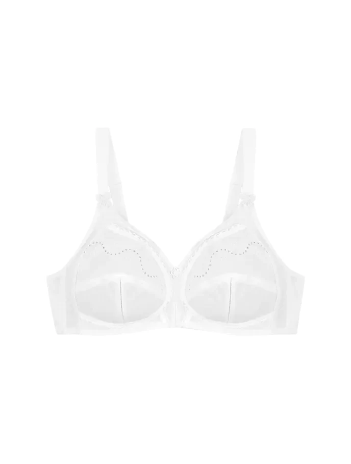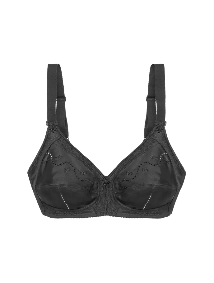 - Vestibilità: Reggiseno senza ferretto, coppe morbide non imbottite, scollatura a V, spalline imbottite ampie e regolabili, disponibile in coppe di dimensioni maggiori