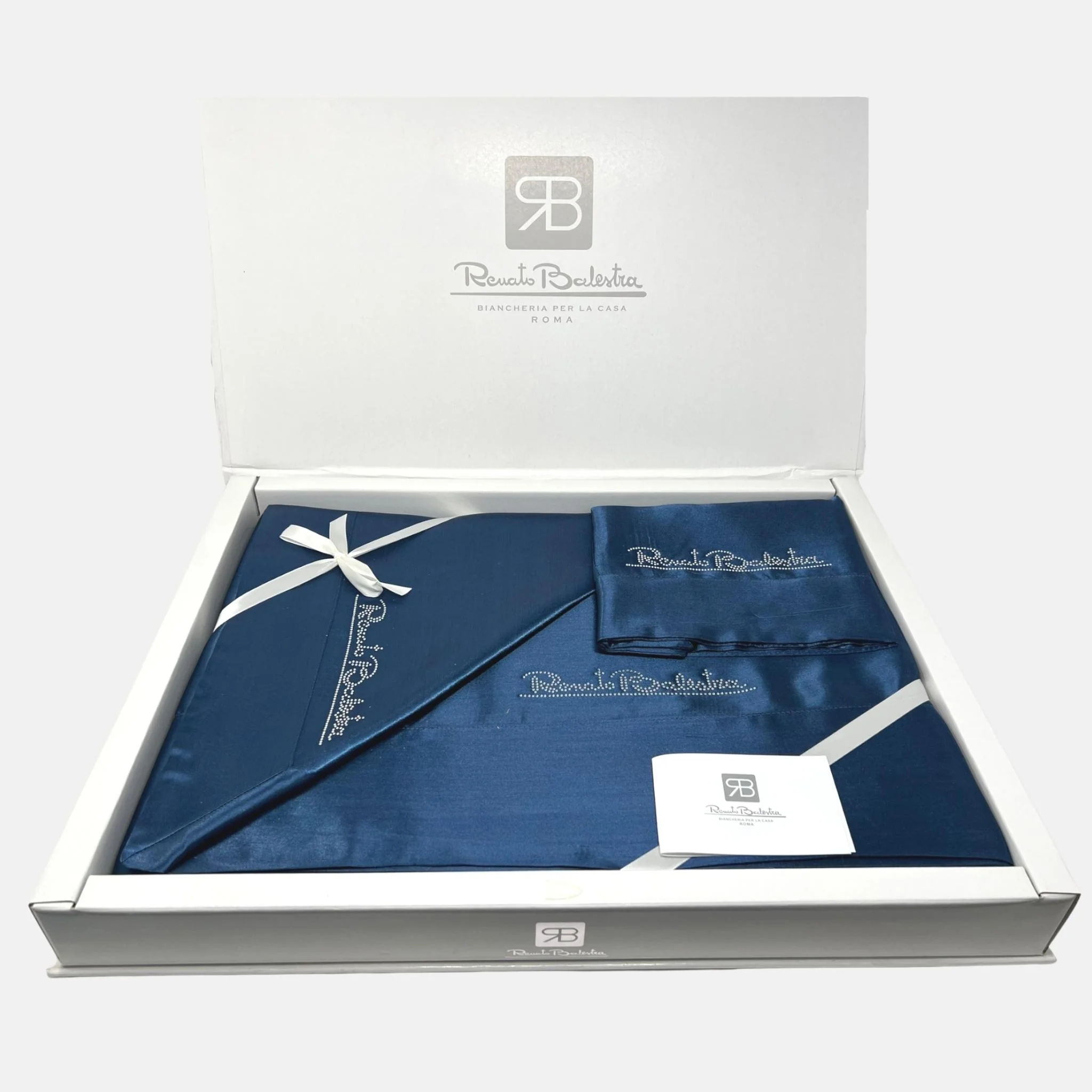 Copp091 – Renato Balestra Completo Lenzuola Matrimoniale In Raso Con Applicazione