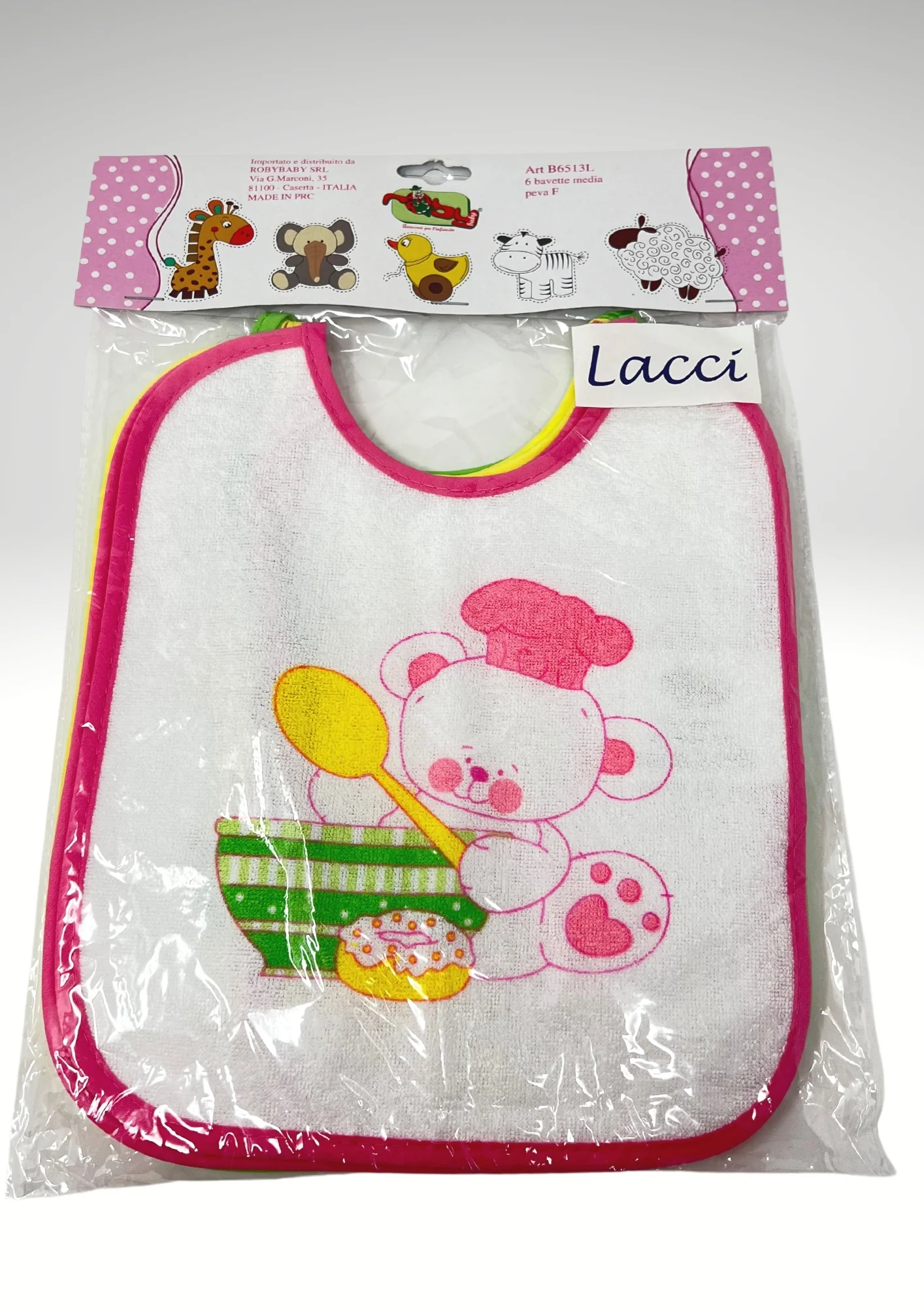 B6513l – Roby 6 Pezzi Bavetta Media Spugna Retro Pvc Chiusura/laccetti Stampata Femminuccia