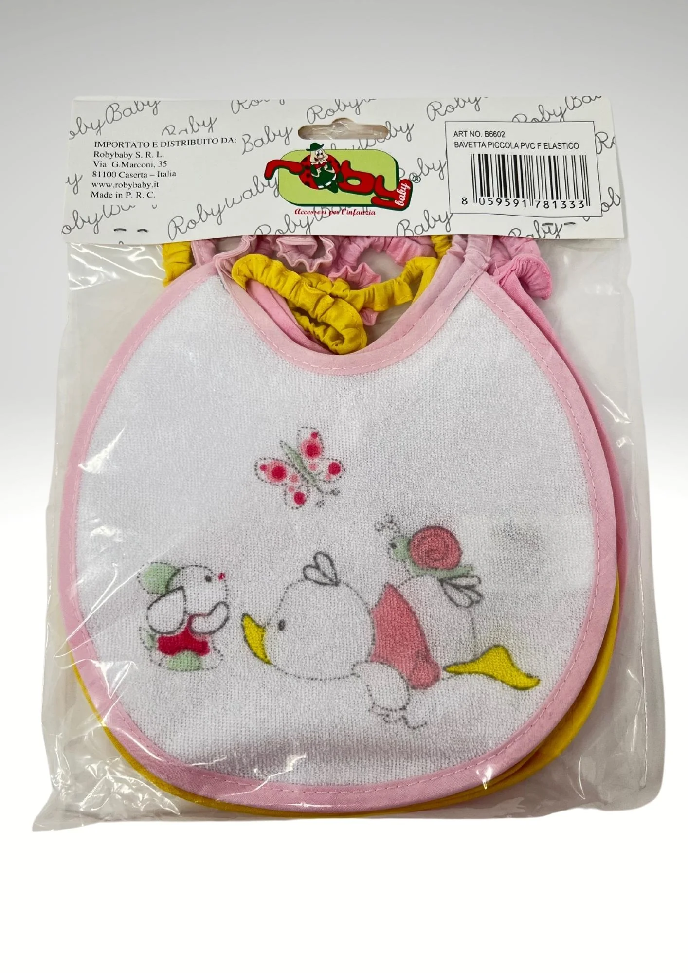 B6602 – Roby 6 Pezzi Bavetta Piccola Spugna Retro Pvc Chiusura/elastico Stampata Femminuccia