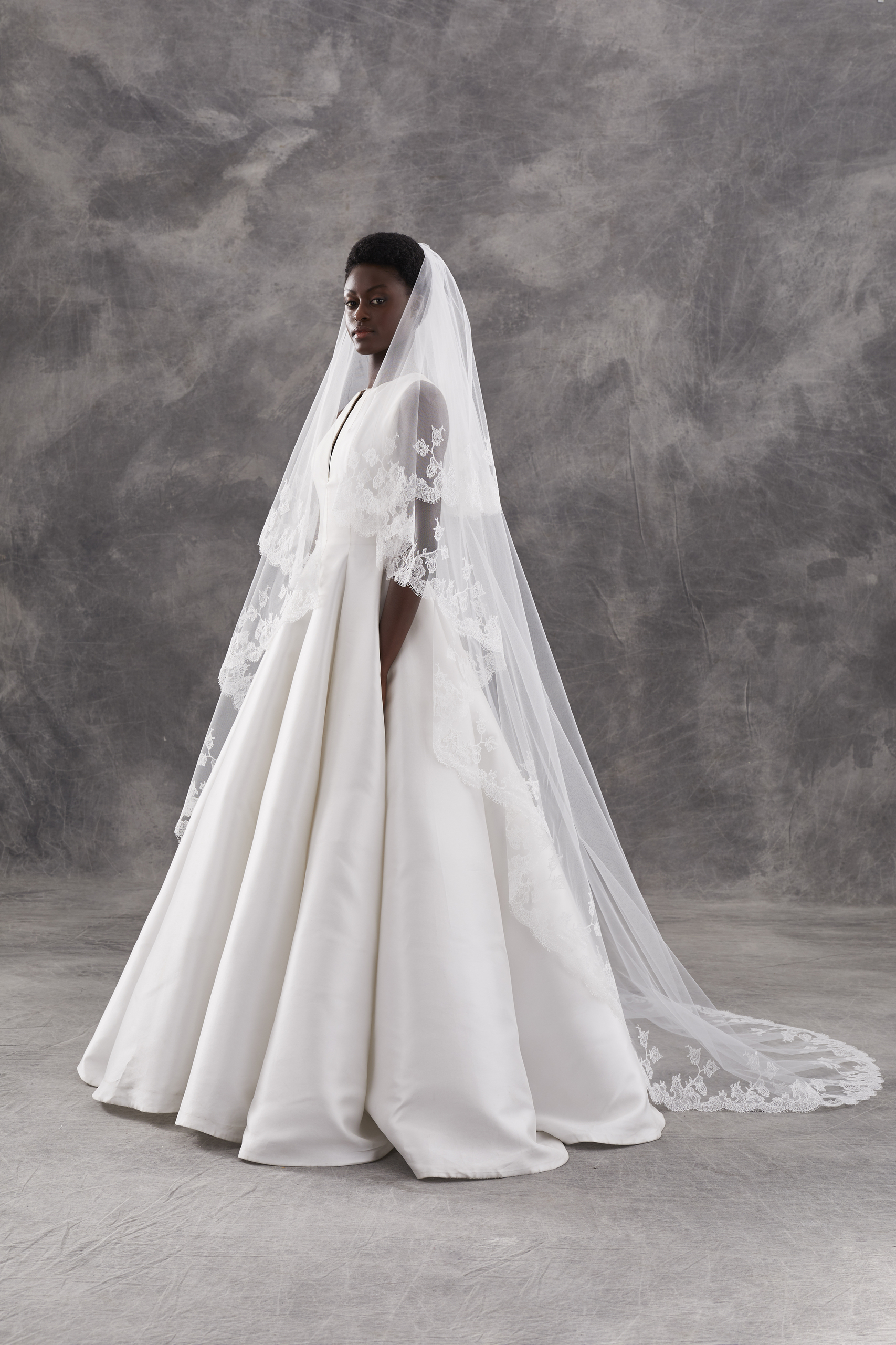 Il velo da sposa Rose V 1628 è un velo classico ed elegante dalla forma ovale. E’ realizzato in tulle, con calata e ha un prezioso bordo ricamato con fiori di pizzo.