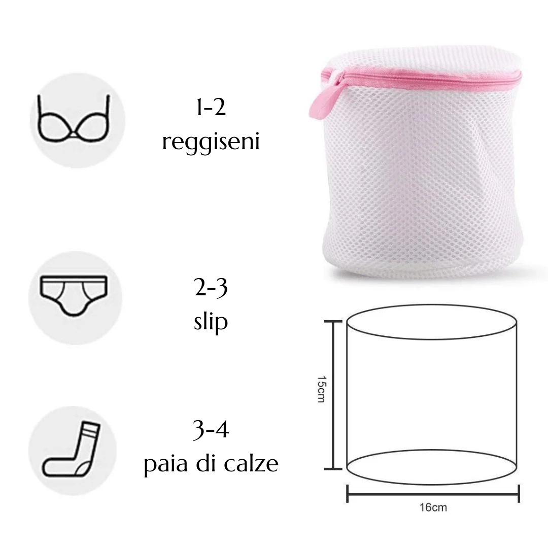 - Una soluzione che fa risparmiare tempo: lava i tuoi reggiseni senza fatica mettendoli in un sacchetto, sigillandolo e gettandolo in lavatrice: niente piรน lavaggio a mano o preoccupazione per la biancheria intima danneggiata.