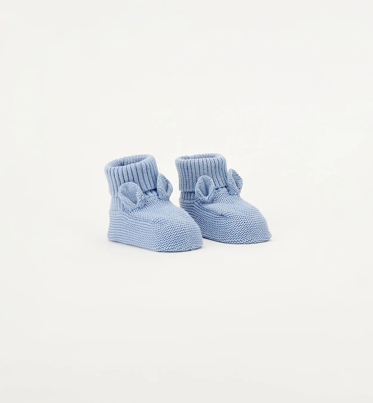Piccole, leggere, essenziali. Le prime scarpette non devono solo completare un look, ma custodire i piedini con delicatezza e comfort. Scarpette per neonato in 100% cotone, realizzate in maglia morbida e traspirante. Il modello presenta risvolto alto a costina che avvolge delicatamente la caviglia e dettaglio decorativo laterale lavorato nello stesso filato. Perfette per completare coordinati e completi in cotone, ideali nei primi mesi.